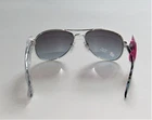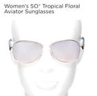 Hi there, this listing is for a brand new pair of womens aviator style sunglasses by SO. They are silver rimmed with UV protection, adjustable nose pieces and tropical print arms (see photos). I also have these same sun glasses with a gold rim in a separate listing so check them out also!