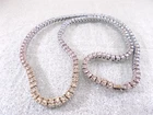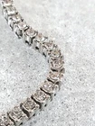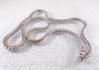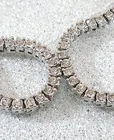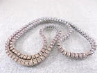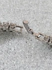 This stunning 26" tennis necklace has crystal rhinestones set in silver (fineness unknown) and has a fold over clasp. The stones have a brilliant shine. It is a heavy, 4 ounce, well made but unsigned piece. Gift boxed. Combined shipping is available. $5.00 for first item purchased with USPS Ground Advantage. Plus $1.00 for each additional item purchased at the same time. To combine shipping on items that have different shipping cost methods (flat rate, shipping included, calculated shipping), exact weight of package will calculated and excess shipping will be refunded.