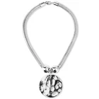 Statement jewelry is an enduring trend, and our necklace looks the part. It is designed with a chunky chain and hammered circle pendant at the drop. Wear yours to complement everyday outfits at the office and on weekends.