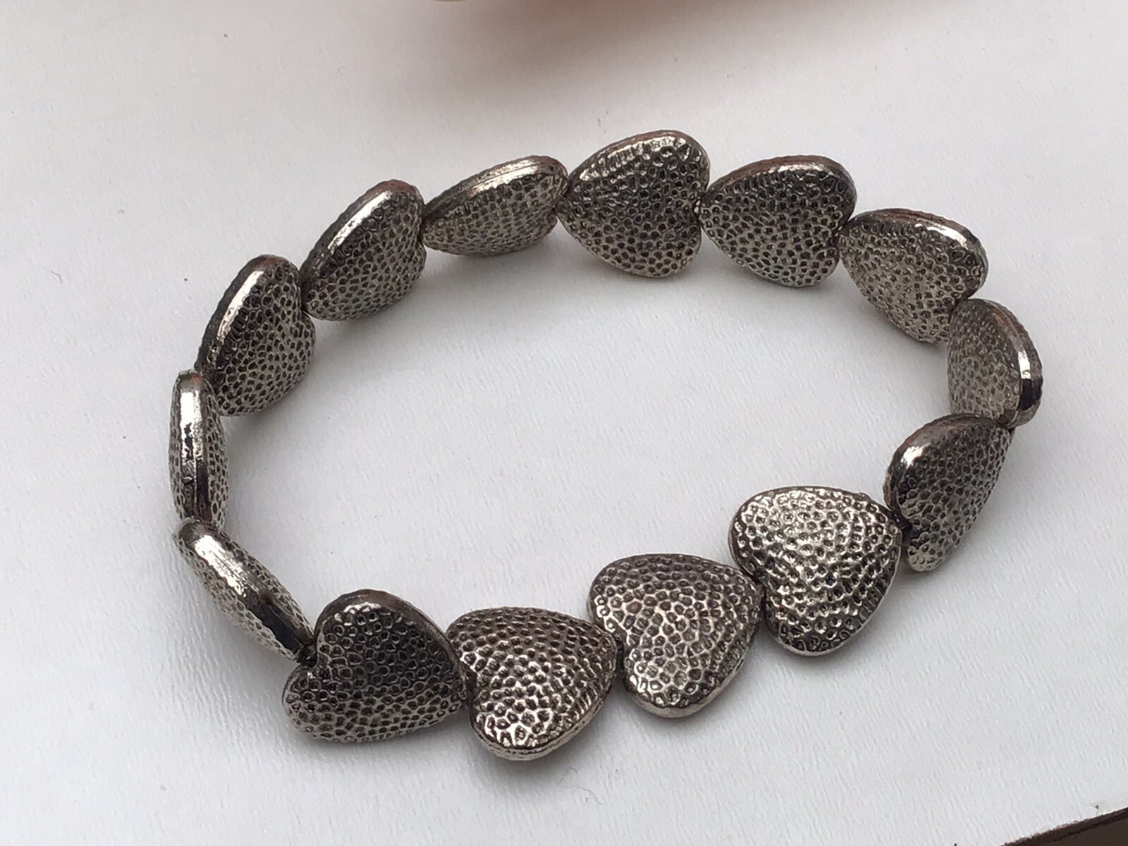 Bracelet Silver Tone Metal Heart Elasticated Stretch Stretchy Bracelet Bangle