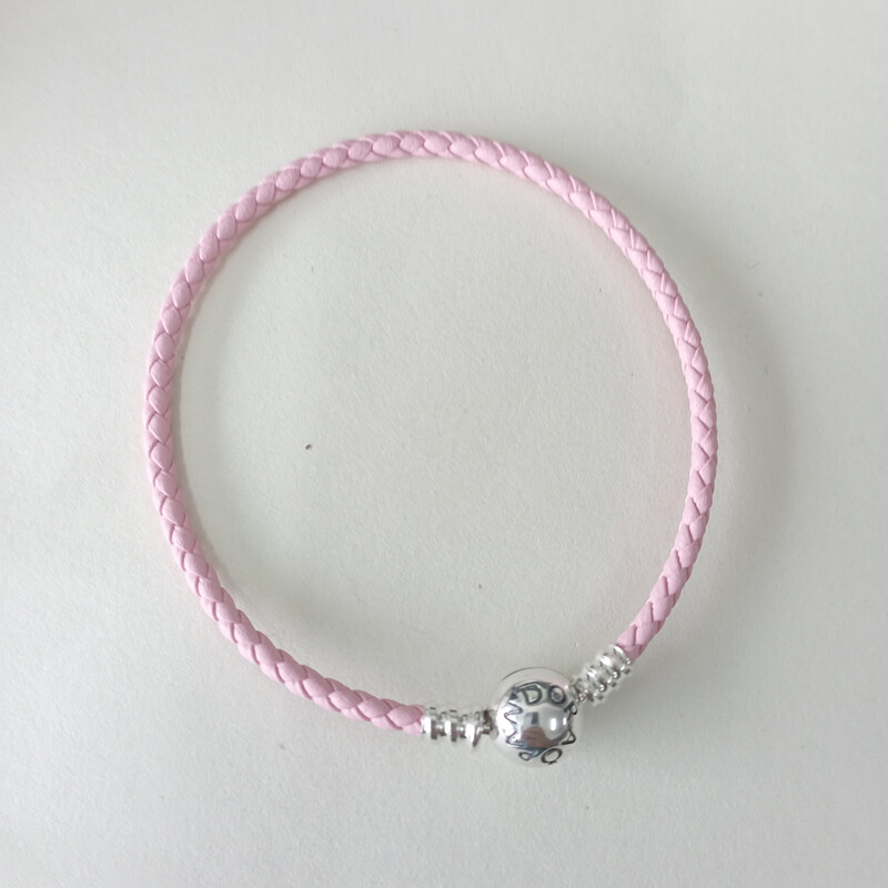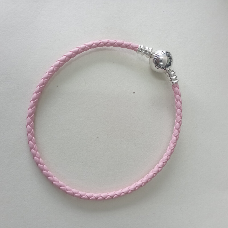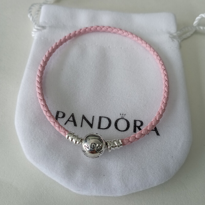 BRACELET 17.5 cm,20.5cm + pouch Sterli CHARM PANDORA Pink Silver LEATHER Kept in good condition despite previous ownership. The item comes with a Pandora bag for storage purposes. (Please specify if you prefer a box in the order note.)