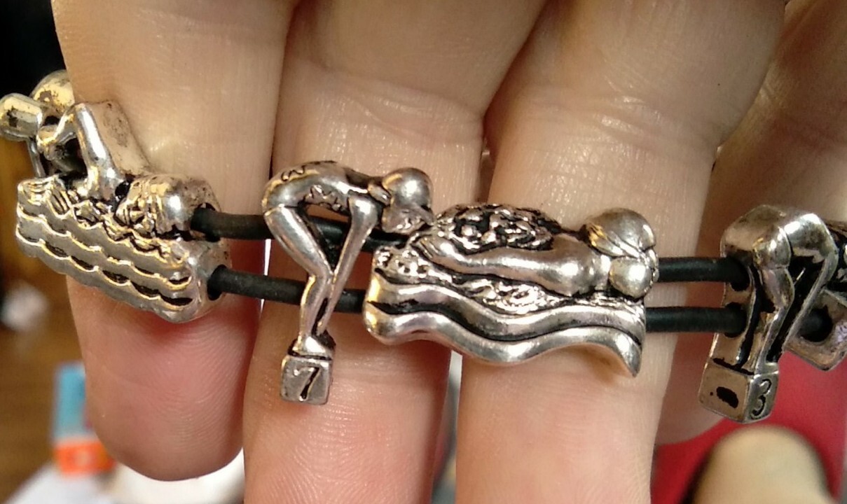 Bracelet Silver Swimmers Magnetic Cord. May be silver but I can't see the .925. You can add more charms. Excellent condition