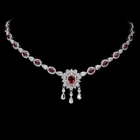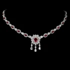 Solid sterling silver 925 stamped white gold coated necklace in a stylish design featuring oval cut faceted genuine natural mined heated pink ruby gemstones each measuring from 5mm x 3mm to 8mm x 6mm set with bright white round and taper baguette cut faceted lab created zircon stones each measuring from 1mm x 1mm to 3mm x 2mm. The necklace can be fastened anywhere between 17 and 19 inches using the integral extender fastening and t he stone set part measures 220mm x 30mm. GIFT BOXED Thanks for looking and please take time to view my other listings #18125