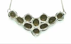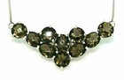 Solid sterling silver 925 stamped white gold coated necklace featuring oval and round cut faceted with checkerboard table genuine natural mined chocolate brown smokey quartz gemstones each measuring from 8mm x 8mm to 9mm x 7mm set into a cluster necklace. The necklace measures 18 inches long. GIFT BOXED Thanks for looking and please take time to view my other listings