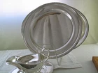 Reference # FC 620-606-640 -Description: Oval Platter 20” – Round Platter 16” & Sauce/Gravy Boat with Gadroon, Applied Border -Pattern : French Gadroon -Size : 20 in. - 16 in.- 3⁄4 Pint -Size : 20 in. - 16 in.- 3⁄4 Pint -This is the finest silver quality ever made, equaled only by Christofle & Ercuis -Electro Plated on E.P.N.S. , a quality silver plated on Nickel Silver -Made in England, by Frank Cobb in 1970’s -Marked : Frank Cobb, A 1 Sheffield-England or F.Cobb & Co A1 -Retail Price : $ 2,680.00 Wholesale : $ 1,340.00 -Quantity Available : 2 -A 1 is a quality silver plated warranty required by the Consumer Protection Agency in the U.K. A heavy silver deposit warranty for a lifetime everyday use. -Frank Cobb, a distinguished silver company in Sheffield , England; supplier of finest stores in the U.K such as, Mappin & Webb, Garrard's etc... and abroad. -N.B. Marks may differ taking in consideration the shape, size, item, etc.. -Condition: New, in the Factory original packing in 1970’s