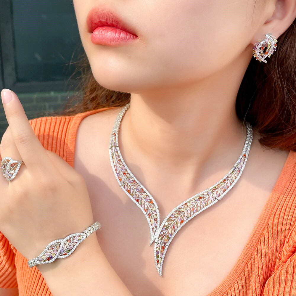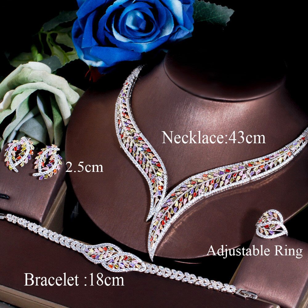 Leaf Stud Earrings Necklace Bracelet Ring Silver Plated Zircon Women Jewelry Set Feature - Made of High Quality C ubic Z irconia : The color is pure and gorgeous, excellent cut simulated diamond; - Silver Plated, Detail-oriented: Fancy appearance, suitable for so many occasions; - Exquisite Design: Lights up your beauty, displays your extraordinary taste. It is also a great gift to your love ones. Item Specification Item Condition: 100% Brand-new unopened item in the original package and in good condition Type: Luxury Jewelry Set Style: Gorgeous, Elegant, Luxury Stone Material: Cubic Zirconia Main Stone Cut Shape: Baguette Base Metal Material: Copper Metal Material: Silver Plated Shape: Leaf Color: Multicolor Suitable Occasion: Daily, Party, Engagement, Wedding, Anniversary , Valentine's Day, Carnival, ect... Package Includes 1 Pair of CZ Stud Earrings 1 Piece of CZ Necklace 1 Piece of CZ Bracelet 1 Piece of CZ Rings Please note: *Please bear in mind that there might be 1~2cm difference due to manual measurement. *Our digital images are as accurate as possible. However, different monitors may cause colors to vary slightly. *We offer after-sale service, if there is any item problem, please feel free to contact us via message first, thank you for kind understanding. About us Payment Shipping Returns Contact us About us Luxuryjewelrycz is a new online store which focuses on the luxury jewelry. We are newly founded in 2021 and target worldwide market. And we are dedicated to offering you an unrivalled choice of excellent products with unbeatable low price and satisfied customer service. Payment We accept PayPal only. We only ship item to your e B ay verified address which is consistent with your PayPal address. Payment must be received within 7 days from the date of purchase. Shipping T he order will be sent out as soon as we can, normally, it will be within 2 working days and we do want all our customers could receive the package ASAP. And if you have any problem with the delivery, you may please feel free to contact us. Kindly remind that we can not change the address after the order is placed. And somtimes custom tax might be required, and it will be buyer's responsibility. Thank you for kind understanding. If you have any problem with the address, please kindly contact us without any delay. Thank you. Returns We provide 30 days money back return policy: If you have changed your mind, please kindly make sure the item is in the original package and in good condition and unused, and please kindly contact us via eBay message first, thank you. If there is any quality problem with the item, please feel free to contact us via eBay message, and we will do our best to help you fix the problem ASAP. And we sincerely apologize for any inconvenience may cause to you. Contact us We offer after-sale service, if you have any problem, please feel free to contact us via eBay message, and we will do our best to reply you ASAP. Thank you for your kind understanding and your kind patience.