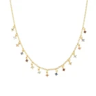 $ 7.48Sterling Silver Gold Ovals Charm Choker 40CM Chain Necklace Rainbow CZ Women
