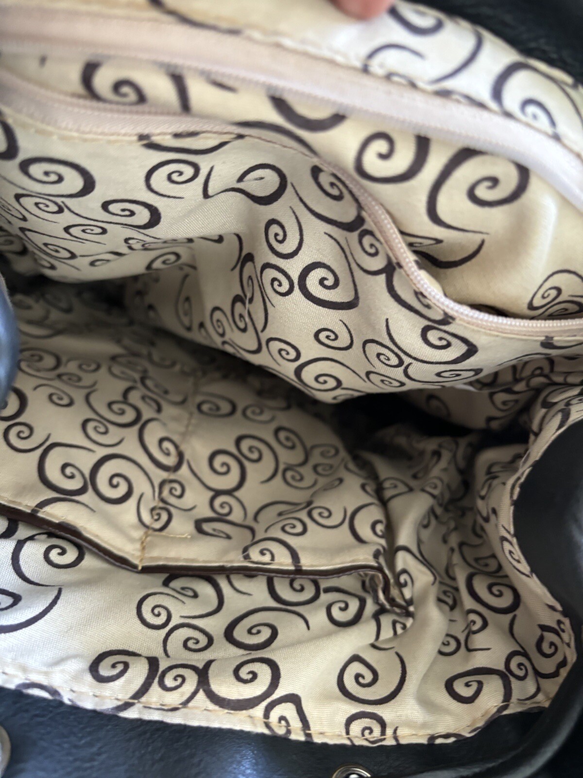 This backpack is a total game-changer—sleek, edgy, and surprisingly roomy! The silver studs and sequin weave give it major style points, while the drawstring and outer pockets keep everything secure. Lightweight yet sturdy, it’s perfect for travel or everyday use. The black faux leather and adjustable strap add a luxe touch. Love how versatile and eye-catching it is!