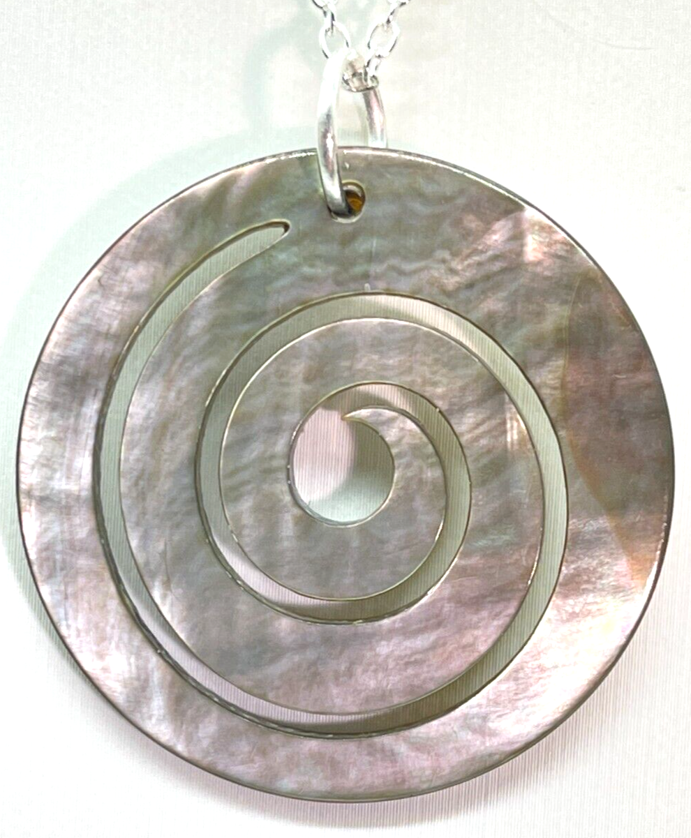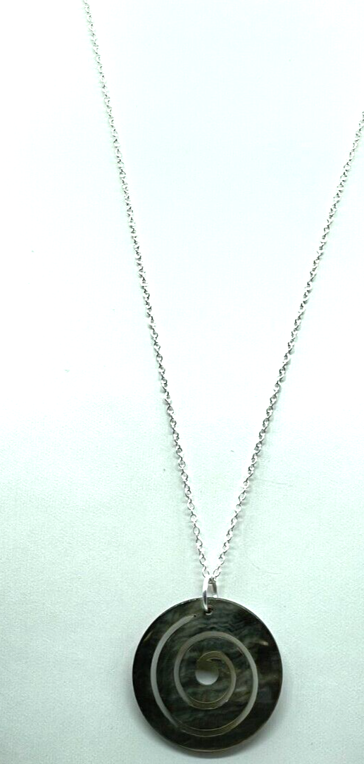 This stunning necklace features a 1" abalone swirl disk pendant in a beautiful silver tone. The pendant is attached to a 24" chain, making it suitable for any occasion. The necklace is perfect for those who love beauty, art, fashion and costumes. The necklace is made in China and is an ideal gift for your loved ones. The necklace is also a great addition to your jewelry collection. Bin N 230
