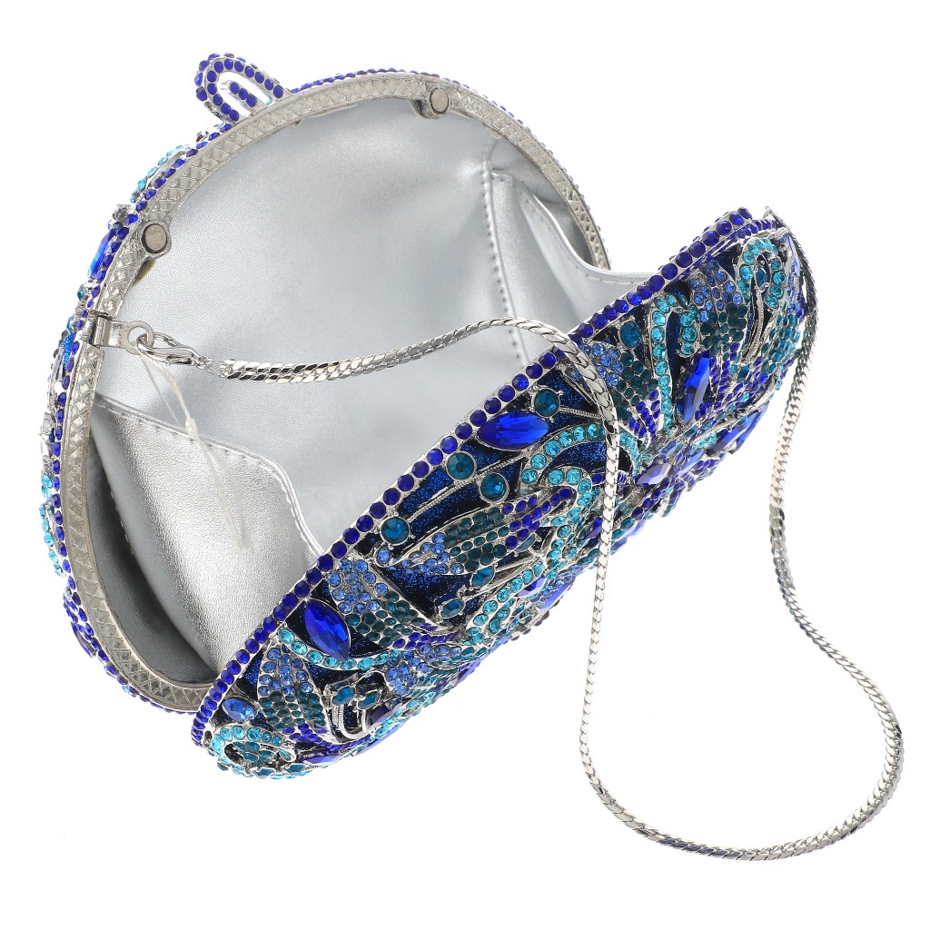 Silver Tone Alloy Metal Crystal Rhinestone Clutch Evening Bag / Size: 7.75"L x 5.25"H x 2.5" W / Chain Size: 21" L / Color: Silver & Blue Condition: Brand New SKU: HB6012-BLU Color: Blue Design: Flowers & Plants All orders will ship from USA via UPS or USPS. We expect all local orders will receive the items within 7 business days or less depend the location. Worry free international shipment delay or custom duty fee.
