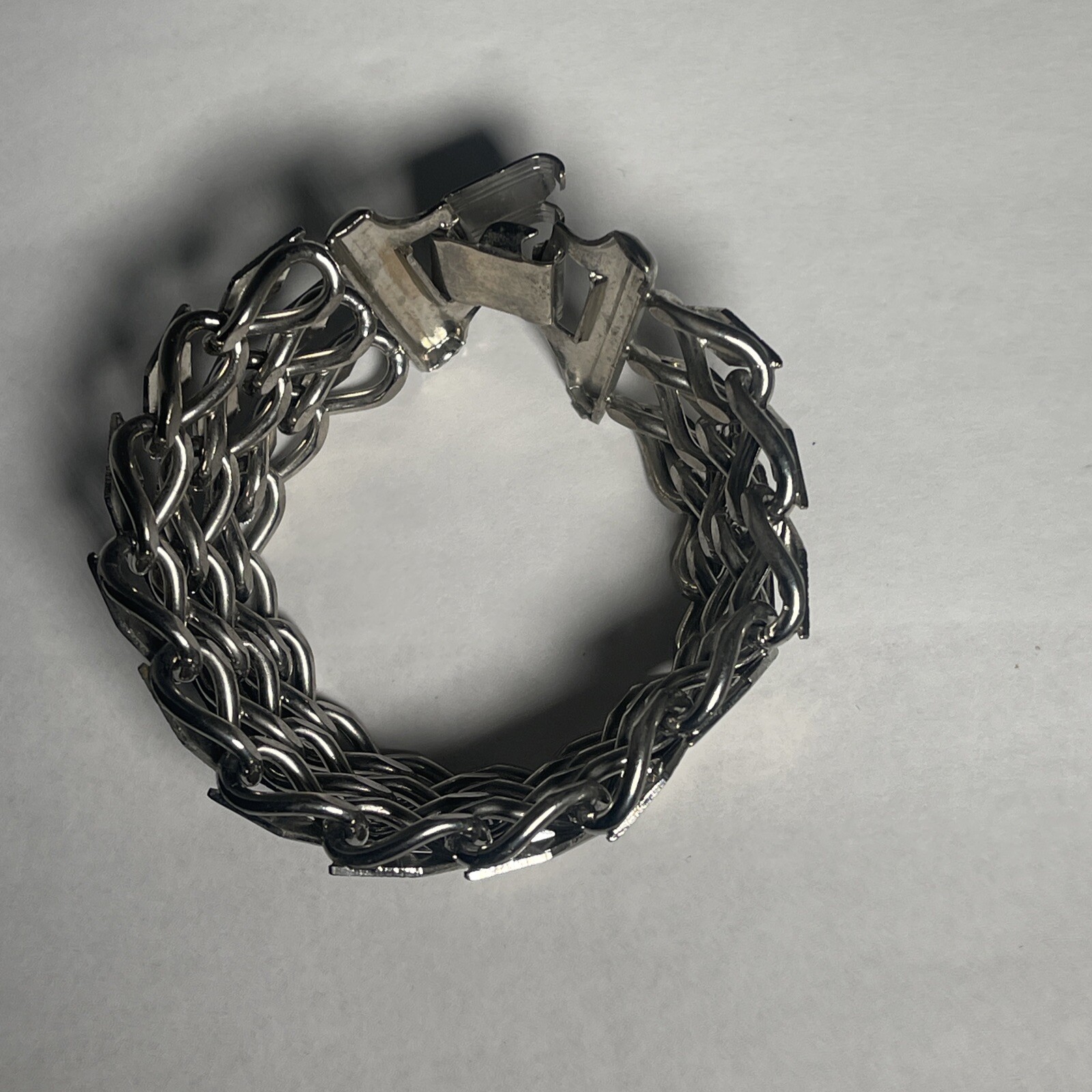 Bracelet Diamond Design 7" Silver Tone 1” Wide Flex Band Style. Condition is Pre-owned. Shipped with USPS Ground Advantage.