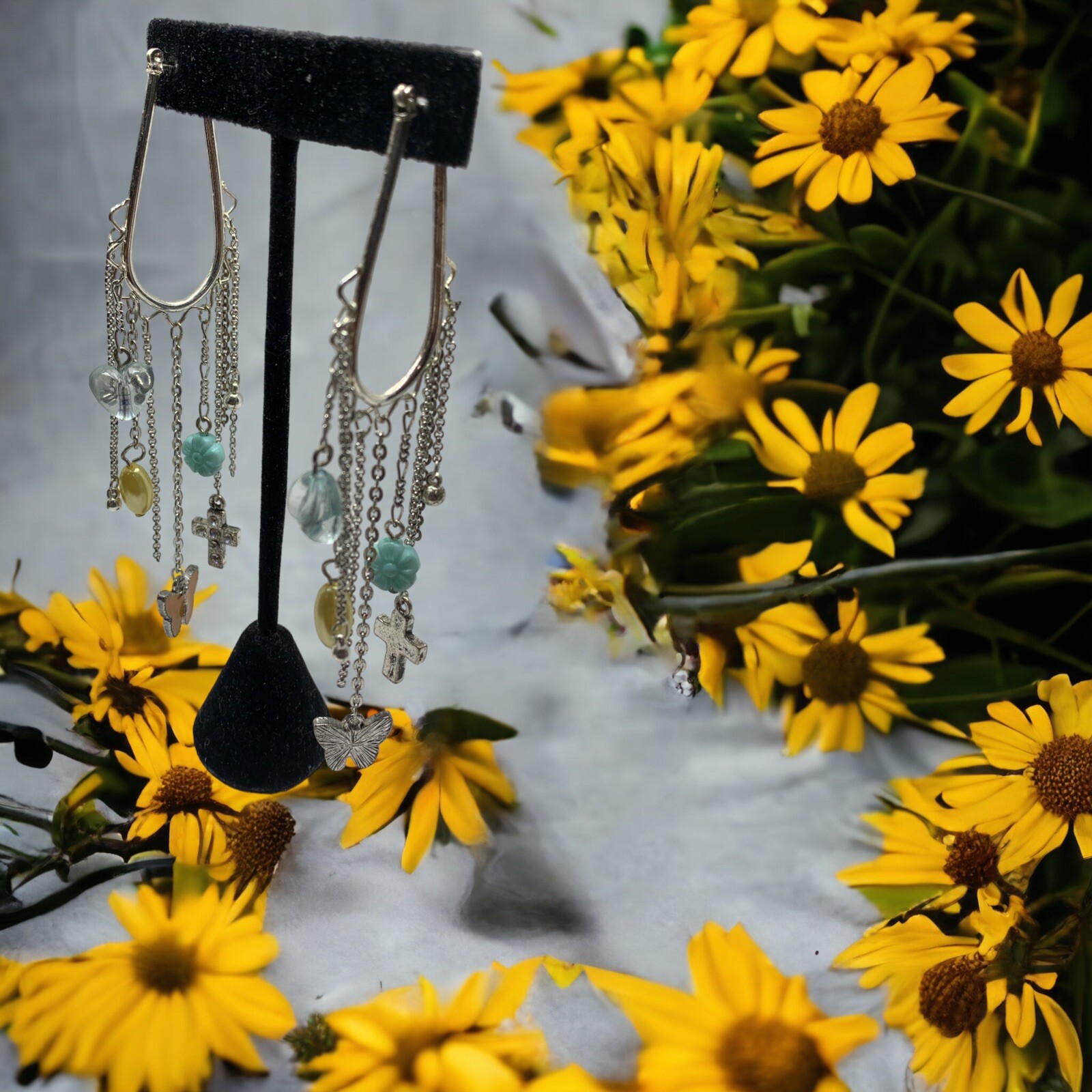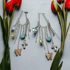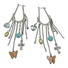 Silver tone long dangle charms earrings 4”