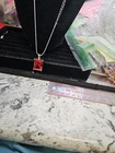 This silver-tone necklace features a stylish red rectangle pendant set with prongs and a lobster closure. The pendant is designed with an emerald-shaped red glass main stone, giving it a beautiful and fashionable look. The necklace has a 22-inch length, making it versatile for all occasions. The vintage charm of the piece adds a touch of beauty and elegance to any outfit, making it a must-have accessory for those who appreciate unique and eye-catching jewelry.