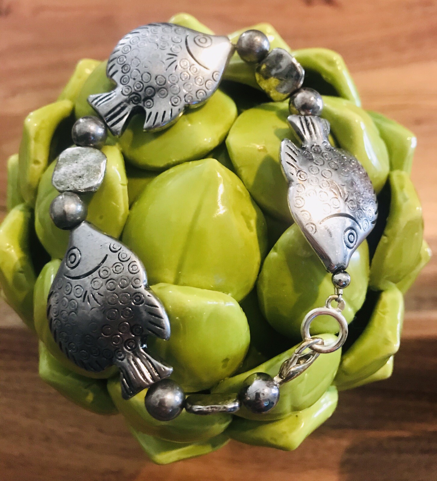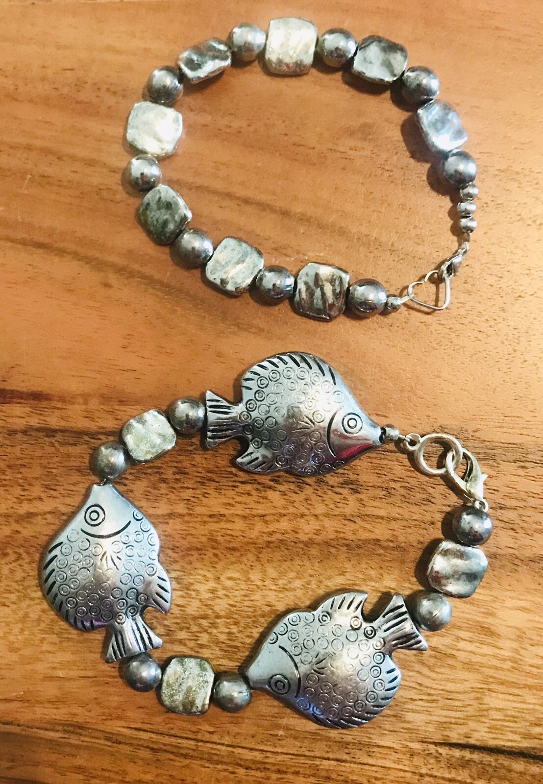Bracelet With Silverfish & Bichon Pieces Claw Attachment, 2pc Set, Handmade. Casual fun Statement Piece, Designs by CLS, Tree of Life Creations, Shipped with USPS First Class.