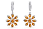 Simulated Citrine Flower Dangle Hoop Earrings in 14K Gold Plated Silver PRODUCT DESCRIPTION Product Information Brand Jewelry Auction House Type Earrings Style Dangle Metal Sterling Siver Metal Purity 925 parts Per 1000 Main Stone Simulated Citrine Main Stone Creation Simulated Main Stone Color Orange Main Stone Shape Oval Clarity VVS1 Cut Very Good Gender Women's Secondary Stone Simulated Diamond Fastening hidden-snap-posts Occasion Engagement/Wedding/Anniversary/Valentine's/Gift This piece of jewelry is a made to order item which take approx 5 days time to make before we ship. This piece of jewelry is a made to order item which take approx. 5 days time to make before we ship. This Product Available in Metal Color: Rose / Yellow / Rose upon the request Pictures have been enlarged to show details. < PAYMENT We only accept payment via PayPal Please sent the payment to us within 8 days after the auction has ended, or you will have unpaid case auto open by eBay. SHIPPING We will ship all items within 5-10 business days of purchase during the work week (M-F) excluding holidays. If you order on Friday, your order will be shipped the following business day. Tracking will be provided when it becomes available. Domestic delivery may take up to 1 week. It all depends on the local office. Once the order leaves our location, we have no control over delivery times. We will only ship to a Paypal Verified Address. Please make sure your address is current and correct. If the information does not match, your order may be canceled. Buyers are responsible for all customs, duties and taxes for your respective countries. Delivery times for International Shipping will vary. California Buyers Pay 9.0% Tax on all orders.d case auto open by eBay. Source Level Destination Shipping Provider Fees Each Additional Standard Shipping United States USPS Standard Shipping Free $0.00 Priority Mail United States USPS Priority Mail $6.99 $4.99 Priority Express Mail United States USPS Priority Express Mail $27.99 $4.99 First Class Mail Canada USPS First Class Mail International $13.99 $4.99 Express Priority Mail International USPS Express Priority Mail International $54.99 $4.99 < TERMS OF SALE Returns are accepted. . Item must be returned in unworn and resalable condition. We will only issue a refund for the purchase price, excluding any shipping fees. If we are at fault, we will provide a full refund. Buyer is responsible for all return shipping costs. FEEDBACK Please do not leave a negative feedback as a way to communicate. Any rating given to a seller can neither be changed nor modified. So better communicate for faster resolution to any disputes. If you have any concerns regarding your purchase, please contact us via eBay Message, we assure you that a satisfactory resolution will be reached. Please help us maintain a 5 Star DSR rating in all 4 rating categories, if you feel otherwise, please let us know how we can score a perfect rating from you before you rate us. Thank you for shopping with us!! Have a nice day