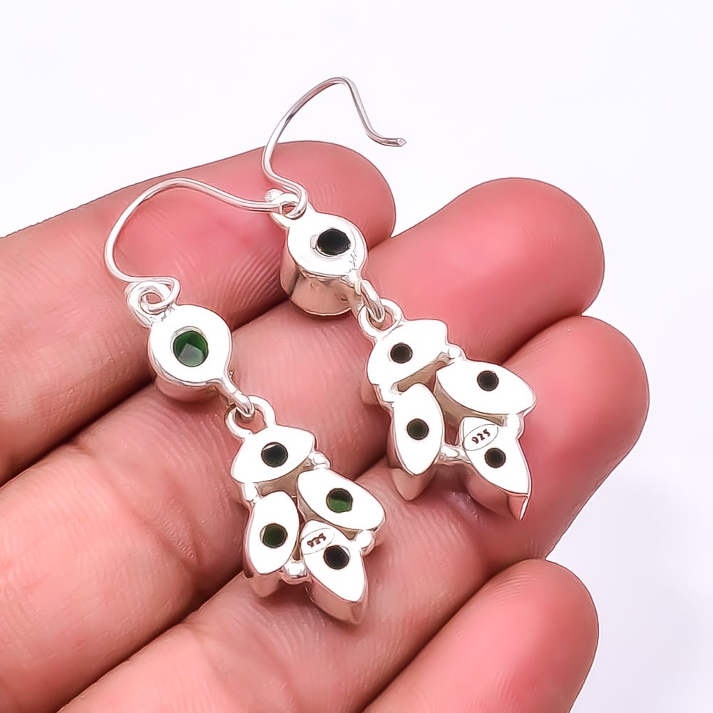 $ 13.2Simulated Malachite & Emerald 925 Sterling Silver Dangle Earrings 2.11 Inch