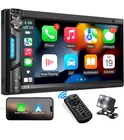 Brand ABSOSO Connectivity Technology Bluetooth Mirror Link USB Controller Type Touchscreen, Siri Google Assistant Special Feature Bluetooth Mirrorlink Spotify Pandora, AM FM Preamp Subwoofer Video Output Preset EQ, 7 Inch CarPlay Touchscreen 1080P Video Play, Apple CarPlay Android Auto Voice Control GPS Navigation, Backup Camera Input USB SD AUX-inBluetooth Mirrorlink Spotify Pandora, AM FM Preamp Subwoofer Video Output Preset EQ, 7 Inch CarPlay To… See more Compatible Devices Subwoofer, Tablet, Amplifier, Smartphone, Speaker Connector Type RCA 【Double Din CarPlay Radio with Bluetooth & Phonelink】: The carplay audio system with built-in bluetooth technology for hands-free calling and audio streaming, you can enjoy the driving entertainment. The car stereo receiver supports navigation function and phonelink for the android cell phone via the app and iPhone via the original charging cable. Note: Only compatible with Android 11.0 or below version, iPhone XR, iPhone 8 Plus or below version. The stereo headunit is not a GPS unit 【Mechless Digital Multimedia Receiver】: With the 7-inch HD touchscreen monitor, you can enjoy your favorite movies or music from your devices with the Aux input/USB port/micro SD, supporting audio format: MP3/WMA/AVI/MKV/MP4/WMV/RMVB/MPEG and video format: RM/RMVB/DVD(VOB)/VCD(DAT)/MP1/MP2/DIVX/XVID/MP4/H263/H264/FLV/3GP/SWF/AVI/ASF/MJPEG etc. This double din stereo is not a CD/DVD Player 【Rear Front View Camera】: The bluetooth car radio supports rear and front view camera with an automatic display of the image on the screen when in reverse. A waterproof HD rear camera with 170° ultra-wide viewing angle included in the package 【Perfect Vehicle Fit】: 100% standard mounting size perfectly match your cars, please double check the dash size before ordering. It features pre-amp, subwoofer outputs, AM/ FM radio receiver, steering wheel controls, wireless remote control, built-in preset, 7 multicolor buttons, and USB charging option