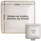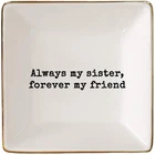 Sister Gift | Birthday Gift for Sister | Jewelry Ring Holder | Elegant Trinket Tray Organizer Dish Product Details Style: Always My Sister Brand: Simply Charmed MPN: SCT-ALSISTER UPC: 851965007890 EAN: 0851965007890 Color: Golden Brand: Simply Charmed Material: Ceramic Style: Always My Sister Special Feature: Food Safe Recommended Uses For Product: Ring Target Audience: Women Shape: Square Occasion: Birthday Mounting Type: Table Top Item Weight: 8 ounces Manufacturer: Simply Charmed UPC: 851965007890 Brand Name: Simply Charmed Recommended Uses For Product: Ring Target Audience: Women Number of Compartments: 1 Number of Drawers: 1 Number of Items: 1 Jewelry Storage Type: Jewelry Tray Mounting Type: Table Top Special Features: Food Safe Shape: Square Occasion: Birthday Style: Always My Sister Color: Golden Finish Type: Polished Inner Material: Ceramic Material: Ceramic Fun Birthday Gift For Sister: from sister or brother. Sisters are great listeners, and great secret keepers. Let your big or little sis know you cherish her with a jewelry dish tray that lasts forever. A special sentimental gift for sister. Sisters Share A Special Bond that only they understand. Sisters share memories that start in childhood and grow through adulthood. Give a gift that is a sentiment like a card, but will become a keepsake gift like a trinket tray that she will treasure. Perfect Gift For Your Sister After this wild and crazy year that tested us all, give your sister a memorable gift such as this white ceramic jewelry tray. Let your sister know you think she is super special. Simply Charmed is USA Based We are from the Heartland of America, specifically Libertyville, Illinois, and want nothing more than to provide you with high quality gifts that are unique and memorable. If you have any questions or concerns, please reach out to us directly for a speedy answer or resolution.