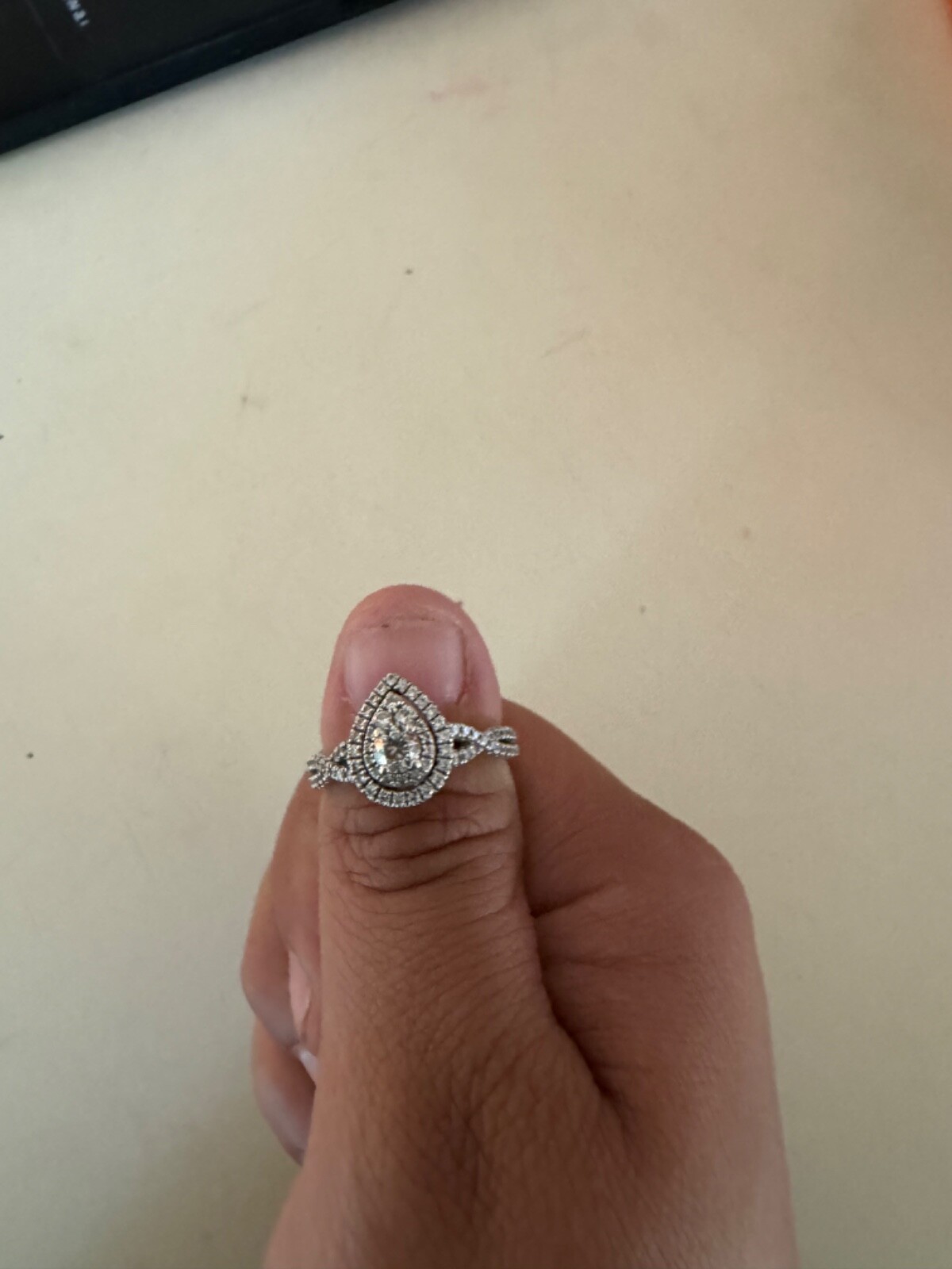 Absolutely breathtaking! The teardrop diamond sparkles brilliantly, and the delicate accents along the band add just the right amount of elegance. The 14k white gold gives it a timeless, luxurious feel, and the size 7 fit is perfect. Kay Jewelers truly delivered a masterpiece—this ring feels special the moment you put it on. A stunning choice for an unforgettable proposal!