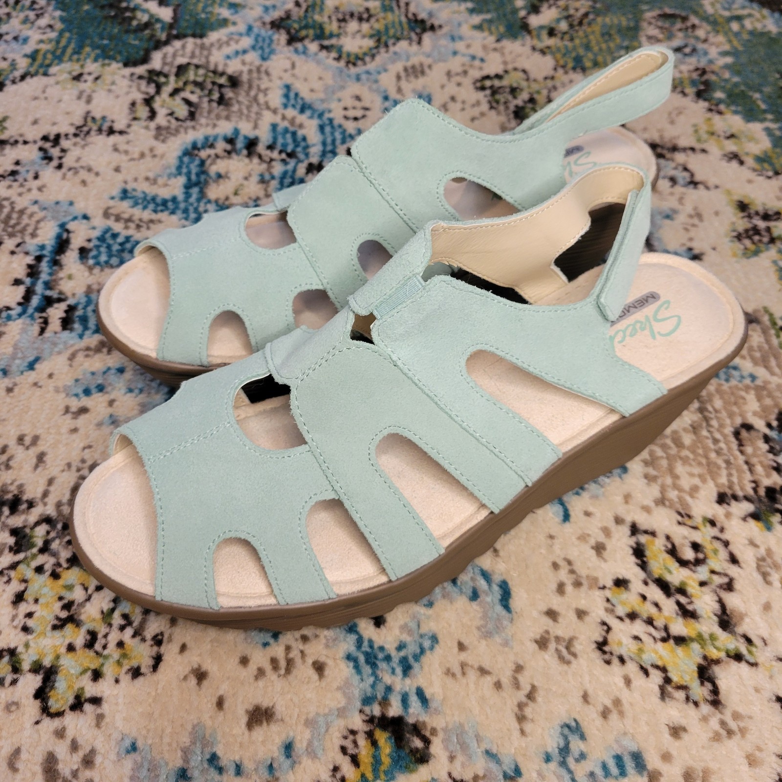 Skechers Women’s Parallel Stylin Suede Slingback Wedge Sandals Size 8.5 Mint