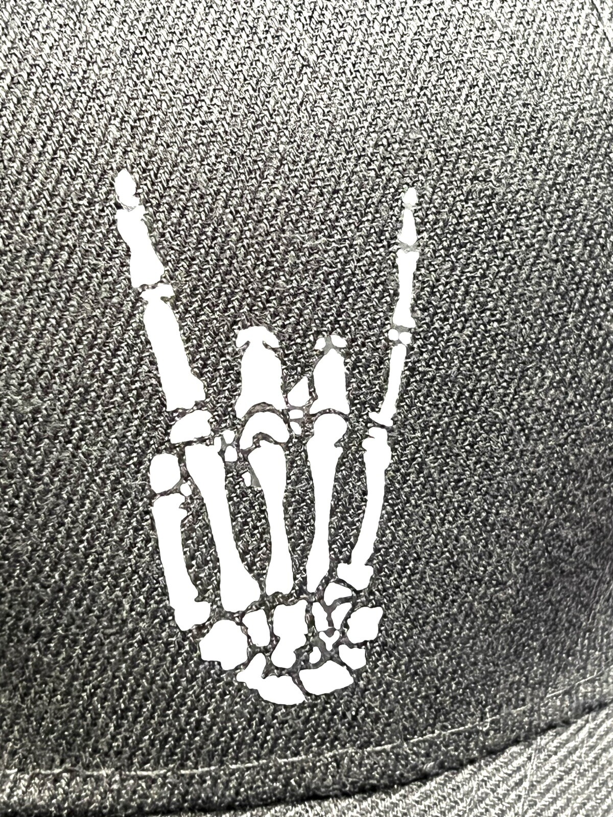 Hat Cap Skeleton Rock Hand Black SnapBack Adj OSFM NOS Sellers Notes: Hat is pre owned. Never used. Clean. No smoke. No pets. Nice see pics. Thanks for looking