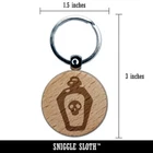 Skull Potion Poison Bottle Engraved Wood Round Keychain Tag Charm