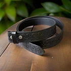 Western Heavy Duty Genuine Full Grain Leather Belt 1-1/2" Wide (38 millimeters). Made from high-quality one-piece full-grain cowhide leather. 100% Genuine leather belt. Convenient snap system for interchanging buckles making it a versatile strap for different occasions Buckle is not included.