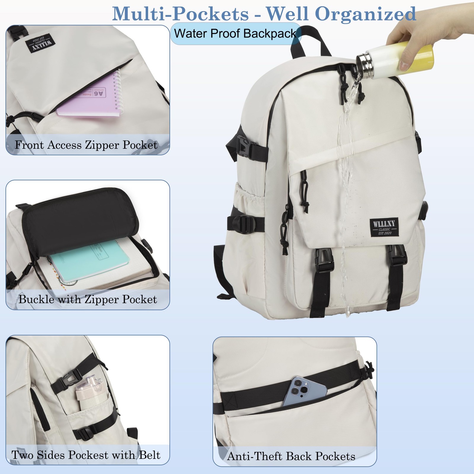 Laptop Backpack ▶STYLISH DESIGN:The fashion backpack with front flap pocket design show freestyle and casual personality.The laptops bag with padded compartment sleeve fit tablet from 14 to 16 inch.This back pack also along with backpack ornaments(a white plush soft bear doll key pendant)as gift makes the bags more fashionable and unique ▶High Quality Material & DIMENSION: The compus backpack for college made of the water resistant,friendly and latest oxford, it is sturdy and durable. The outdoor daily backbag for teenage with smooth metal zippers ensures daily long-lasting use.The size of the backpack for school:17.5"x12.2"x5.9"(LxWxH) Weights:1.65LB ▶LARGE CAPACITY AND ORGANIZED:The school backpack owns 6 independent pockets for large storage and organization for small items. The spacious main compartments with many hidden pockets can accommodate lots of stuffs like college supplies, travel accessories, clothes, stationery, notebook, cord organizer, The deep Zipper pocket in front flap for Easy access essentials,Two side Elastic net pockets with safy buckle belt create a stabilization for your travel gear umbrellas or water bottles ▶Anti theft & Practical Backpack: The laptop travel bagpack designed for airplane traveling approved, easily accessible hidden pockets for valuables on the back keep your valuables safe and handy. And the luggage strap is very practical so that you can attach the backpacking to the trolley of your luggage to make your trip more comfortable ▶Versatile Usages: The lightweight unisex backpack is incredibly versatile.Perfect as elementary middle high school bags,teen back pack, college backpacks,book bags for teens, casual back bag pack, antitheft travel backpack,work backpack for nurse teacher, backpack purse for women men,outdoor camping bagpacks. Practical gifts for children, big kids,college students,teachers,partner,friends,Mother’s day,Thanksgiving day,Christmas New Year Presents