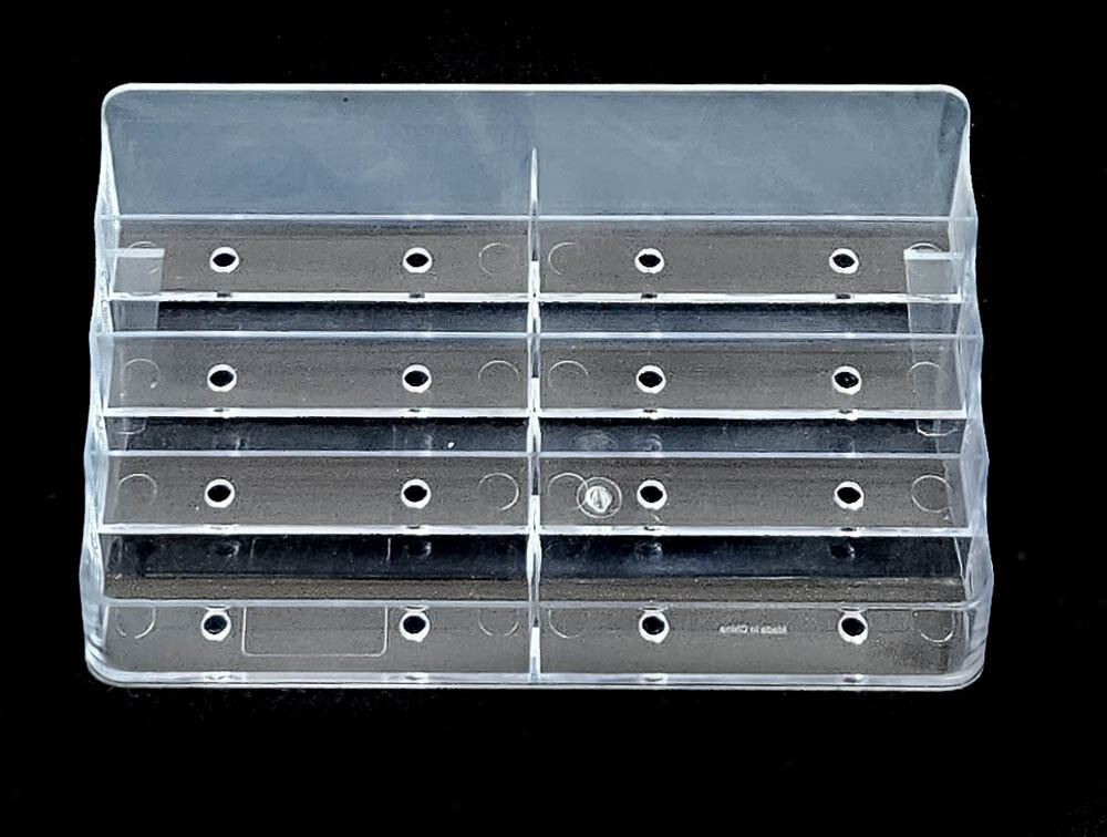 Business Card Holder Display 7 3/4" X 3 1/4" x 3 3/4" Clear Plastic Items sold AS IS. PLEASE view the images and read description/item details and shop policies carefully. We will find you the most economical shipping - FedEx, UPS, USPS. Questions/concerns? Contact us prior to purchase. Refunds for damage on INSURED items only (no exceptions). Local pickup always available. Shows very little wear. Eight compartments for cards: top 3 tiers are 3/4" deep, the bottom tier is 7/8" deep. Clear plastic. The panel behind the top tier is slightly cloudy by design.