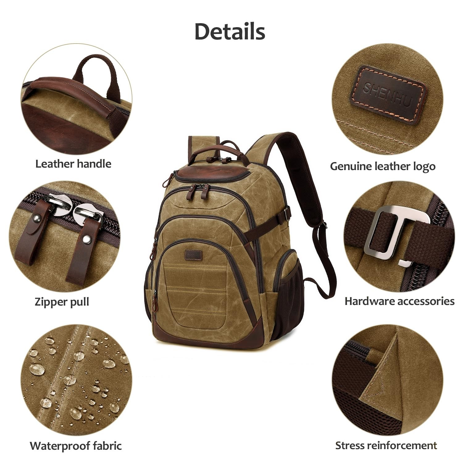 【Quality Material】: This stylish laptop backpack is made of waxed canvas and leather material; Dimensions: 18.5"x13.4"x9", fits up to 17.3" laptop; Weight:2.95lb. 【Multi-Compartment】: Our large travel backpack with separated compartments and pockets which can provide roomy space. From dedicated laptop and tablet compartments to smaller pockets for pens, chargers, and even sunglasses, the backpack keeps everything neatly in place. No more digging around for essentials. 【Comfortable&Safe】: Plenty of cushion on your shoulder and lower back area to keep it comfy. "Secret" zipper pocket behind lower back cushion is great for passport, cash and other valuables. Sewing / stitching is solid nylon thread. 【Leather Backpack】Top Leather and bits of leather zipper pull make the backpack stand out in the looks. A well-knitted luggage strap is quite convenient for you to fix the backpack on the trolley of your luggage, making your journey and travelling more convenient wherever you go. 【Widely Used】: Mens backpack for traveling on airplane can be used in several different ways, served as daily backpack, weekend backpack, professional business backpack for men travel carry on, tsa backpack, personal item backpack, laptop backpack, luggage backpack, suitcase backpack, travel essential,large college backpack with laptop compartment, perfect back to and college brithday travel gifts for men women best friend. THIS ITEM IS NOT INTENDED FOR USE BY CHILDREN 12 AND UNDER.