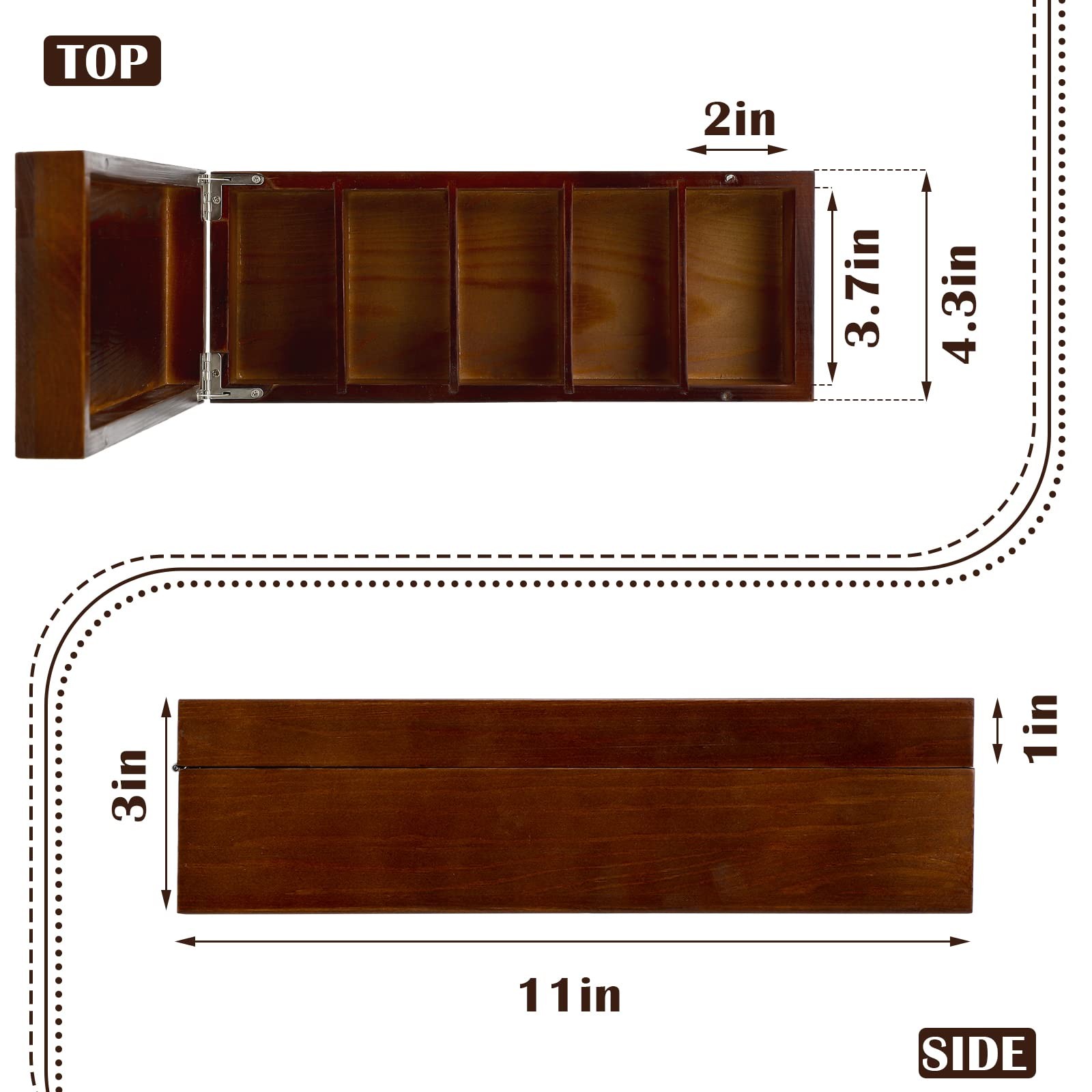 Features: Nice gifts: The wooden card box is suitable for sending to your friends, colleagues, relatives, neighbors, family members and others you care and love, they will be happy to receive this gift. Easy to use: Our business card rack can be applied to store various business cards, keep your desk tidy, and it won't take up too much space, easy and convenient for you to use. Specifications: Material: wood Color: as shown on the picture Size: approx. 11.02 x 4.33 x 3.15 inches/ 28 x 11 x 8 cm Package includes: 1 x Business card organizer Notes: Manual measurement, please allow slight errors on size. The color may exist a slight difference due to different screen displays. Size Information: each business card holder measures approx. 11.02 x 4.33 x 3.15 inches/ 28 x 11 x 8 cm, and the compartment is approx. 1.97 inches/ 5 cm in width, which can help you to organize your cards and make your desk clean and tidy Large Capacity: our index card holder with dividers is designed with 5 compartments, each compartment can hold about 50 to 100 business cards (depending on the card thickness), which can help you to classify, organize and display your cards, practical and elegant Reliable Material: the business card organizer is made of wood material, with delicate polishing procedure, reliable and reusable, sturdy and smooth, not easy to break or fade, which can serve you for a long time, and you can use them with confidence Considerate Design: the index card box is easy to open and close, it is designed with magnets to make it not easy to open after closing, ensuring that the business cards inside are not easy to fall; In addition, each box adopts nonslip design to enhance its stability and avoid your desk from scratching Wide Range of Applications: the business card case is practical and useful, suitable for customer reception, conference table, business negotiations, exhibitions and so on, you can put the business card holder on the counter, desk, table and other easy access places for convenience