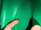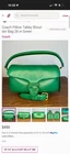 The product is a slightly used Coach Pillow Tabby Shoulder Bag in green, featuring a rectangular shape with a snap closure. It has a detachable strap, bag charm, and original dust bag included. The bag is small in size and has gold hardware accents with a green handle/strap color. The exterior is made of brass and leather, with a lining of leather and fabric. This stylish shoulder bag from Coach is perfect for any occasion and comes with an adjustable strap for added comfort.