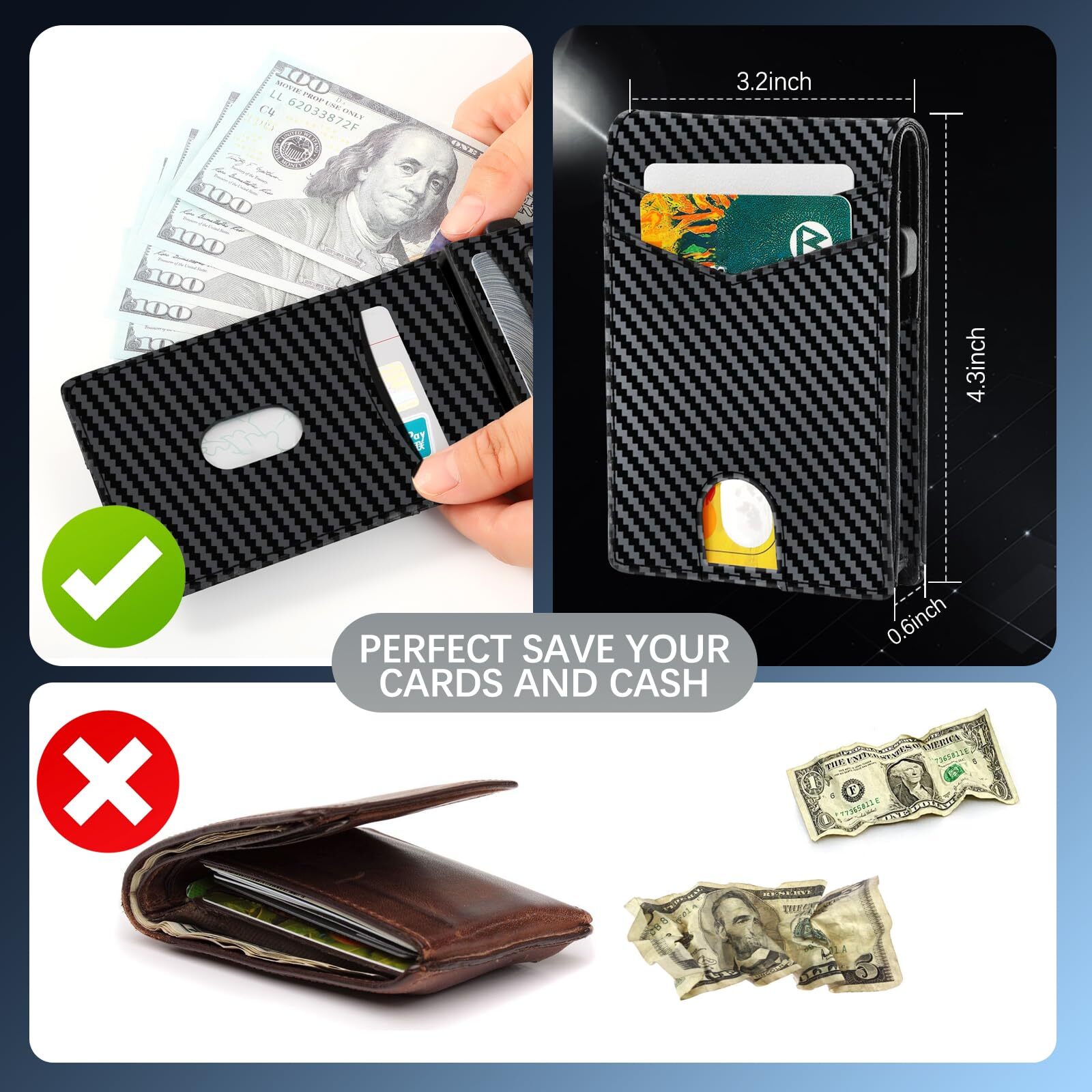 Wallet for Men Pop Up Case,Big Cash Slot, Credit Card Slot - Slim Aluminum Wallet with RFID Blocking, Minimalist Leather Wallet Front Pocket with ID Window, Gift Box Designed for convenience with a big cash slot and pop-up case, this slim aluminum wallet is perfect for men who want easy access to their money and cards. Protect your personal information from electronic theft with the RFID blocking technology in this minimalist leather wallet, ensuring your cards are safe and secure. With an ID window, this front pocket wallet allows you to keep your identification easily accessible, making it ideal for travel or everyday use. Arrives in a stylish gift box, this wallet makes a great present for birthdays, anniversaries, or any special occasion. It's a gift that combines style and functionality. Crafted with attention to detail, this wallet features a sleek design and high-quality materials, making it a durable and stylish accessory for any man's wardrobe.