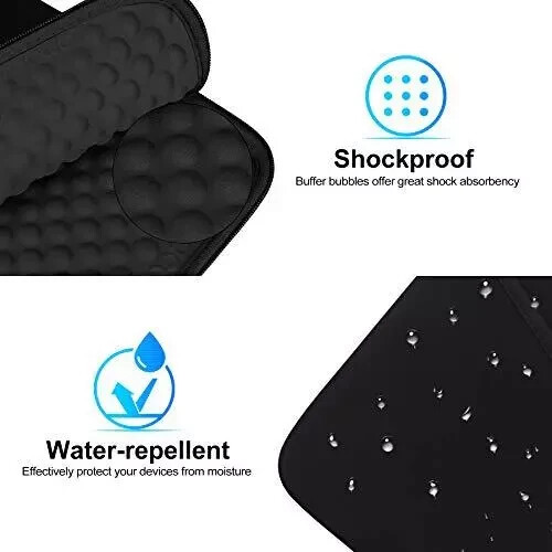 Tablet Sleeve Case for 11 inch iPad Pro M4 / 11 inch iPad Air 9-11 Inch Black Tablet Sleeve Case for 11 inch iPad Pro M4 / 11 inch iPad Air M2 / 10.9 inch iPad / 10.2" iPad / 10.9" iPad Air / 10.5 iPad Pro Air, 11 inch Samsung Galaxy Tab A9+ Bag, Fit Magic Keyboard, Black COMPATIBILITY: Interior size - 10.23" x 7.48" x 0.78". Fit: 11 inch iPad Pro M4 2024 | 11 inch iPad Air M2 2024 | 10.9 inch iPad 10 2022 | 10.2 inch iPad 9/8/7 (2021-2019) | 11 inch iPad Pro 4/3/2/1 (2022-2018) | 10.9 inch iPad Air 5 4 (2022-2020) | 10.5" iPad Pro / iPad Air | 9.7" iPad Pro | iPad Air 2 1 | 9.7" iPad 6 5 4 3 2 1 | 11 inch Samsung Galaxy Tab A9+ | 11 inch Samsung Galaxy Tab S9 S8 S7 | Samsung Galaxy Tab A8 A7 | 10.5" Samsung Galaxy Tab S6 S5e S4 and other 9.7-11 inch tablets. WATER REPELLENT & MOISTURE PROOFING-High quality semi-water resistant Neoprene fabric—Do not worry about getting your tablets wet from splashing water or rain! ENOUGH SPACE & SMOOTHLY ZIPPER-Extra side storage pocket--Easy for you to place your iPhone, earphone, flash drive, pencil and some small accessories for added protection! Top-loading zipper on the sleeve glides smoothly and allows convenient access to your tablet. SHOCKPROOF-Extra soft, The anti-static, Featuring three layers' protection with waterproof layer, shockproof layer Protects your tablet from scratches. Shockproof padding bubble--Providing you with better cushioning and protection, reducing and absorbing impacts, protecting your devices from daily bumps dents and scratches! ASHION STYLE PERFECT GIFT-Exquisite workmanship employing simple structure makes it lightweight and compact for easy portability and convenient use! Multiple Colors The interior and zipper seam are available in a range of colors to match your style.