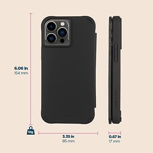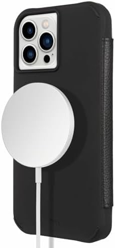 Wallet Folio iPhone 13 Pro Case - Black [10FT Drop Protection] [Compatible with MagSafe] Flip Folio Shockproof Cover Made with Genuine Pebbled Leather, Landscape Stand, Cash & Card Holder Brand Case-Mate Compatible Phone Models iPhone 13 Pro Color Black Compatible Devices Apple iPhone 13 Pro Material Impact Polymer About this item Premium Protection: Crafted with genuine leather, this case offers 10ft drop protection and shockproof materials to safeguard your iPhone 13 Pro MagSafe Compatible: Built-in magnets allow for wireless charging and accessory compatibility with Apple's MagSafe technology Multi-Functional Wallet: Features card slots, a dedicated ID card slot, and a separate cash pocket for convenient on-the-go use Landscape Stand: Built-in stand enables hands-free viewing in landscape orientation for movies, videos, or FaceTime calls