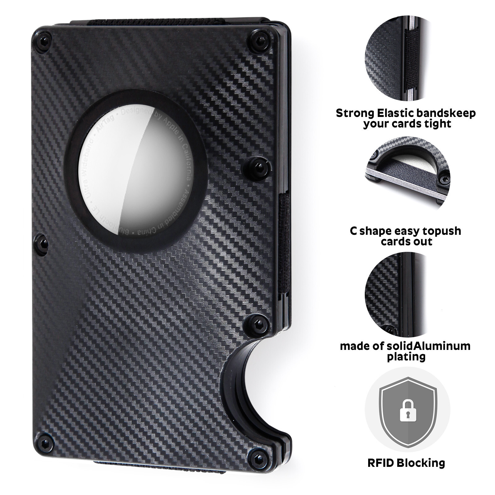 Note: No airtag included. Minimalist Wallet for Men with AirTag Holder Metal Money Clip Air Tag Wallet RFID Blocking Slim Cash Credit Card Holder (No Airtag) (Black)… Airtag Wallet: Specially design for Apple Airtag, The wallet has a built-in holder designed for AirTag (Air Tag Not Included) Minimalist Wallet for Men:The wallet is made of higher-quality aluminum alloy materials. Stylish and cool appearance, slim and lightweight body Large Capacity Airtag Wallet :Holds up to 15 credit/debit cards easily and securely, and the outer cash clip holds your banknote firmly. Easy Install Airtag :Simply rotate the AirTag Compartment cap counterclockwise and put in your AirTag then tighten the cover clockwise. RFID Blocking: Keep your private information and credit card away from thieves' scanning devices, insure your private property safety. Minimalist Wallet for Men with AirTag Holder Slim Card Holder Men Airtag Wallet Carbon Fiber RFID Blocking Metal Wallet.
