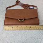 Slim Compact Crossbody Ring Wallet in Cognac Brown Faux Leather