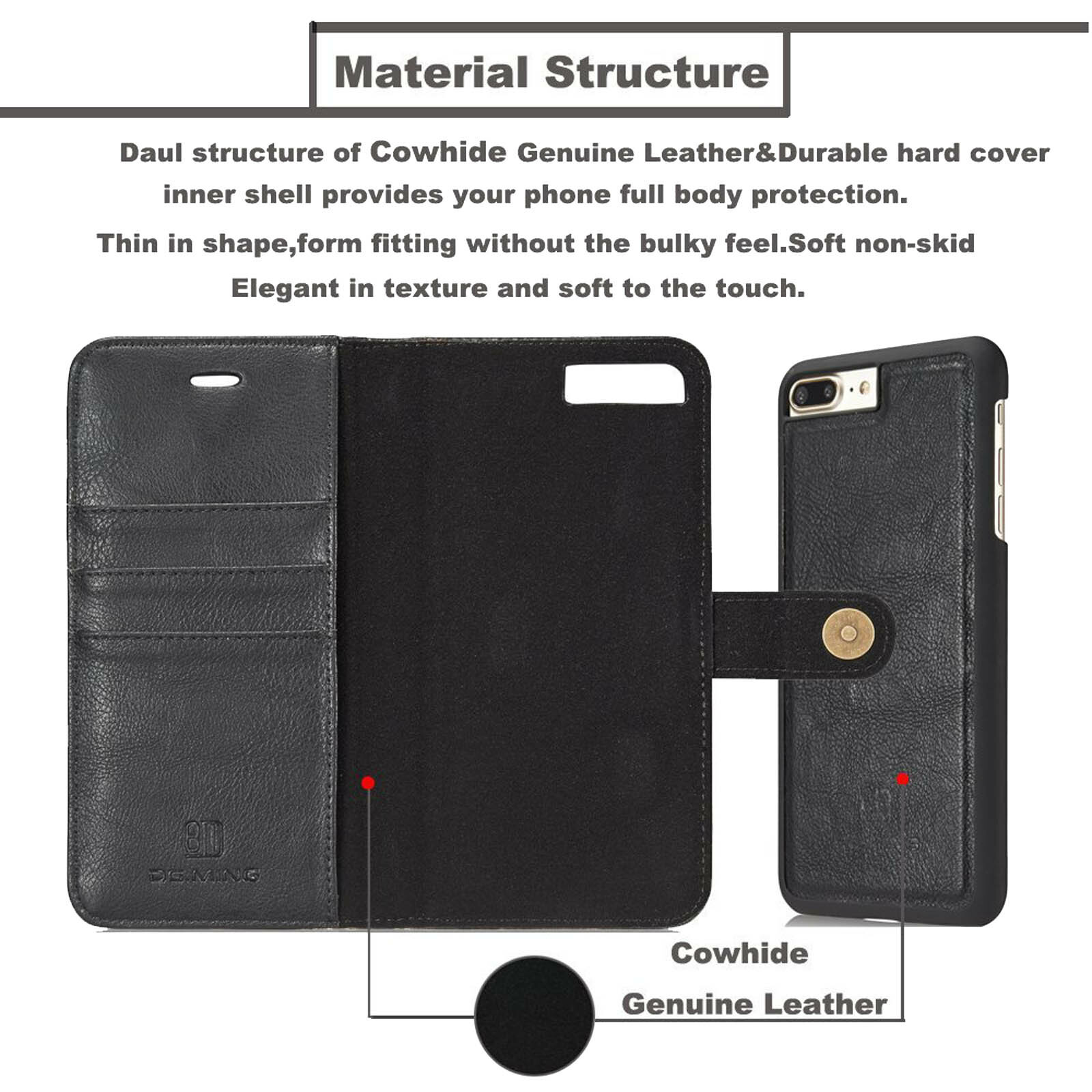 Yellow-Price® Case The Leather Wallet Case with Detachable Slim Case Often copied but never equaled, the Yellow-Price® Genuine Leather case is now better than ever. Yellow-Price® Detachable Leather Wallet Case is our flagship series of Laptop Cases, built using only premium materials and the most advanced technology. 100% GENUINE LEATHER LARGE CAPACITY WALLET DESIGN WORLD'S MOST FUNCTIONAL Wallet Case Packing Included Phone Leather Wallet Case with Detachable Slim Case Black for iPhone 7plus/8plus 5.5" World's Leading OnLine Seller Powered by Yellow-Price Inc. An eCommerce leader specializing in high quality cases, components and accessories for Smart Phones and Tablet & Laptop. Established in 2010, we have built our reputation by the word of our customers. The Leather Wallet Case with Detachable Slim Case 100% GENUINE LEATHER - Branded Apple iPhone & Samsung wallet case are precision made from premium genuine cowhide leather. These hides are selected for quality, strength, character and grain. They look stylish and feel nature and soft MULTI-FUNCTIONAL - This wonderful cover case is perfect for on-the-go use, the card holder case features 3 card slots, a side pocket for money or additional cards, and the effective and stylish magnetic lock design secures your money and cards THE MAGNETIC DIFFERENCE: With this uniquely versatile design you get the complete protection and convenience of a wallet folio, without sacrificing the superior handling of a slim case; Super secure magnetic attachment - your phone won't fall off like other 2-in-1's out there WORLD'S MOST FUNCTIONAL Wallet Case: RFID theft protection in three pockets; Easy-Open Clasp - simply open and close your wallet in a snap, no need to touch the clasp WORKS GREAT with most/all magnetic (car) mounts, selfie sticks, screen protectors, flash photography and Apple Pay/NFC; Does not affect reception; Reinforced clasp with elegant stitching around the magnet, will not tear or come apart like the cheap impostors CONVENIENT TO USE - Full protection. Precise cutouts for speakers, earpiece, camera and other functional ports allow to access to all ports and functions easily, without removing the case LARGE CAPACITY WALLET DESIGN: 3 card slots and 1 money sleeve for added convenience. INCOMPATIBLE WITH WIRELESS CHARGING, SOLUTION COMING SOON Please Note: please select the correct model for your smart phone The Best than what you expected Yes, We Wanna Be Your Friend! Buying from a local onLine seller, you can avoid any worries and troubles, compare buying from oversea. Yellow-Price has built its own branches and warehouses in USA, Canada and Australia. The sales and follow-up services are processed locally. We Ship Locally, From Same Country American Orders: Ship from Los Angeles, California by USPS First Class with tracking number. Takes 2-7 business days. Expedite Parcel Shipping available but cost extra. Canadian Orders: Ship from Toronto, Ontario by Canada Post Lettermail (No tracking available) . Takes 2-10 business days. Expedite Parcel Shipping available but cost extra. Australian Orders: Ship from Sydney, NSW by Australia Post Lettermail (No tracking available) . Takes 2-10 business days. Expedite Parcel Shipping available but cost extra. To ensure the on-time delivery, we do not ship anywhere outside USA, Canada and Australia Please note shipping speed mentioned above are estimated only. Non-major Urban Centres, Northern Regions and Remote Centres may expect longer delivery time. Please understand that occasional delays due to carriers and mails are beyond our control. We Provide Local Warranty Every item which purchased from us, has the local warranty and lifetime technical support from our local company. The warranty term is cary per different item, please check within the warranty section. 30 Days No Reason Return, and We Pay You have 30 days to return the item, we pay return postage and no any questions Full refund is guaranteed Return to same country, fast and safe. Unless those oversea seller, you don't have to return it to another half of the earth Quality Guaranteed Only Premium Materials Our premium materials and advanced technology prevent you from any quality issues. Peace of Mind Included Every purchase includes our worry-free 6-month warranty and lifetime technical support. If you have any questions, our friendly customer service team will be more than happy to help out. Worry Free Buy Ship-Out within one business day, ZERO handling fee Free Local Shipping, Expedited Shipping Available Seller-provided Warranty, No need to contact manufacturer 30-days no reason return, ZERO restock fee