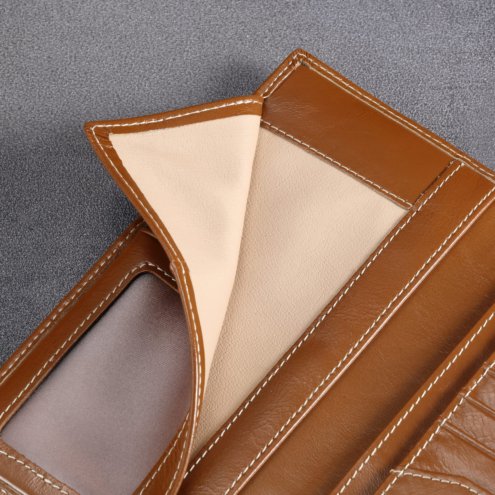 The Advantage: Full grain vintage-looking buffalo leather and contrast stitching, handmade in Italy by senior craftsmen with quality. Our genuine leather is rich looking, smells wonderful and smooth texture Slim Down Your Pocket: 6.89 x 3.42 x 0.52 (inches) 17.5 x 8.7 x 1.3(cm) closed empty. Compact size is perfect to fit in your coat, suit, jean, or jacket Well Built: 8 Credit card slots, 1 clear plastic ID window, 1 large compartment for flat bill or checkbook, 3 slip pockets High Quality Construction: Elegant slim design, tight stitching, and precision manufacturing, permits the men's slimfold purse to hold up to extensive and frequent use What You Get: Leather Bifold Long Wallet, in an exact-fitting and classy matte-black box. Welcome guide, our worry-free 12-month warranty and friendly customer service