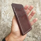 Leather Card Holder. Totally handmade, brown dye and white stitch. The semicircular cuts helps to remove the cards. Very thin, is unnoticeable in the pocket. Made from a model I've made for myself years ago that i use still today, is very resistant and durable