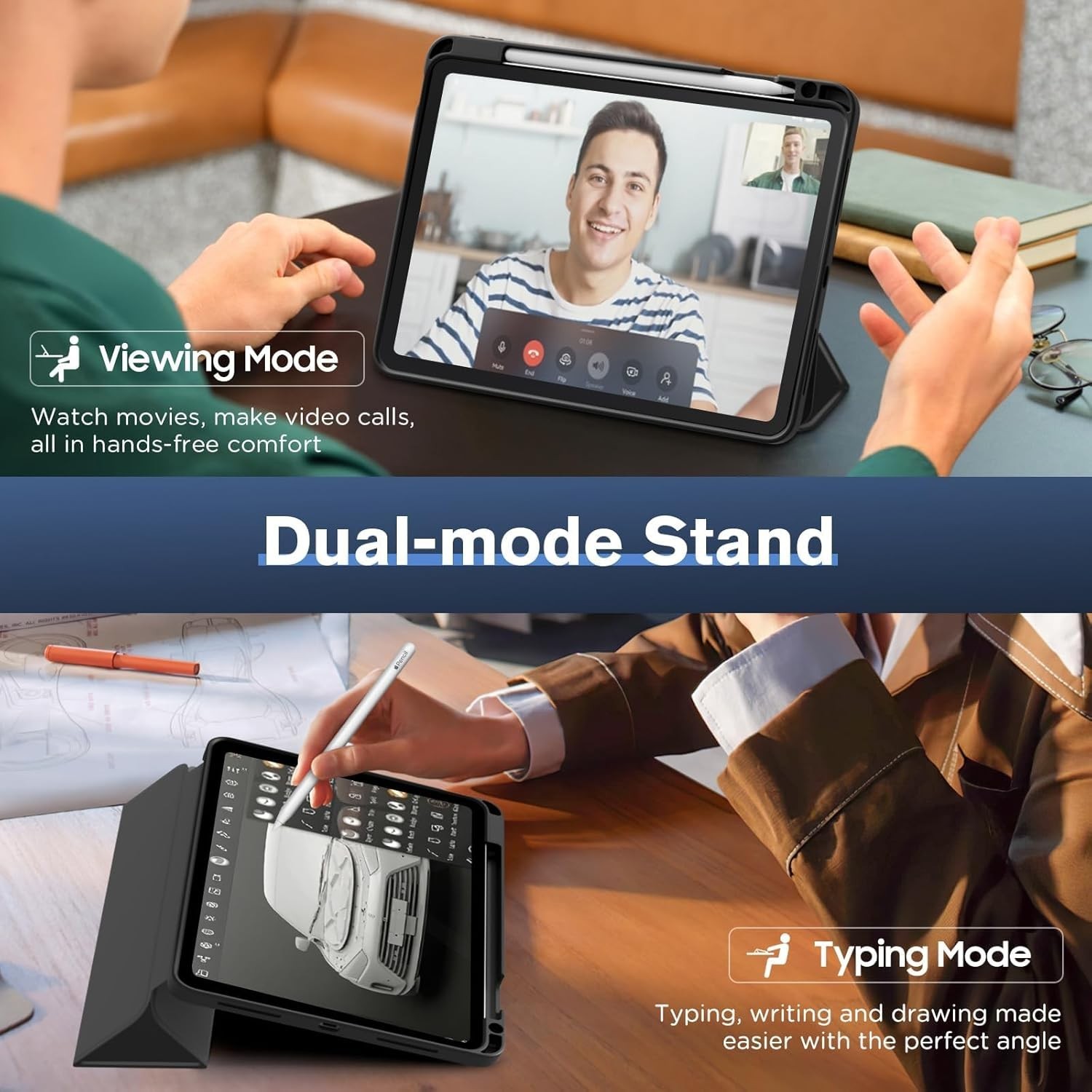 π‘οΈ iPad Pro 11 Inch Case (2022/2021/2020) | Pencil Holder | Auto Wake/Sleep | Smart Cover Stand | Full Body Protection π± Compatibility: β Designed specifically for iPad Pro 11 Inch (2024/2022/2021/2020) models: β Not compatible with any other iPad models. Please check the model number on the back of your iPad before purchase. β Key Features: π Stand Mode for Typing & Viewing: Smart tri-fold front cover transforms into a stand for convenient typing, FaceTime, Zoom, and movie viewing β all hands-free. βοΈ Built-in Apple Pencil Holder: Secure slot for Apple Pencil 2nd Gen , allowing easy storage and wireless charging without removing the case. (Pencil not included) π§² Auto Wake/Sleep Function: Built-in magnetic strip supports auto sleep/wake , preserving battery life and enhancing convenience. π‘οΈ Full Body Protection: Made with premium PU leather exterior , soft microfiber lining , and shock-absorbing TPU back , this case shields your iPad from scratches, dust, and impacts. π Show Off Your Logo: Clear, hollowed-out back shell reveals the original Apple logo for a clean and premium look. π― Ideal For: Students, professionals, and digital creators Office meetings, video conferences, or travel use Anyone wanting style and functionality in one cover π¦ Package Includes: 1x iPad Pro 11β Case (Compatible with 2024/ 2022 / 2021 / 2020 models) Apple Pencil not included