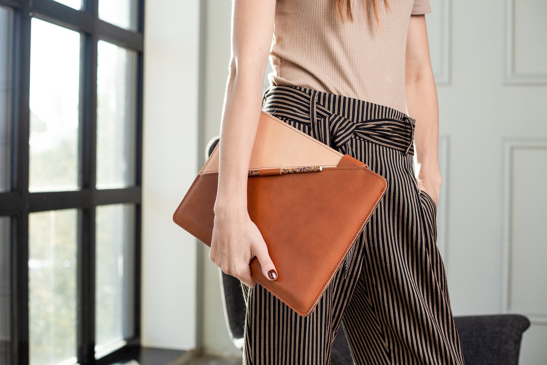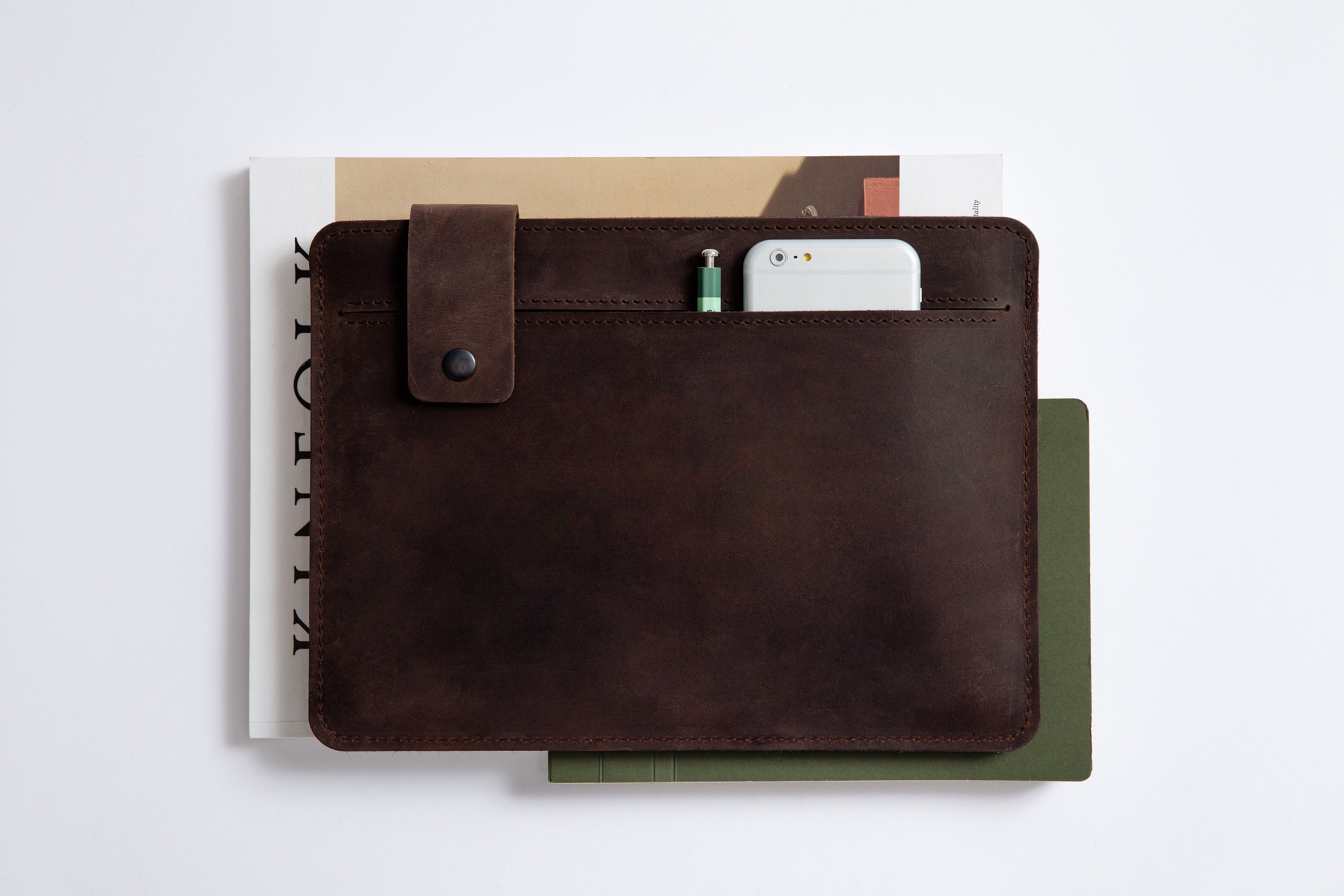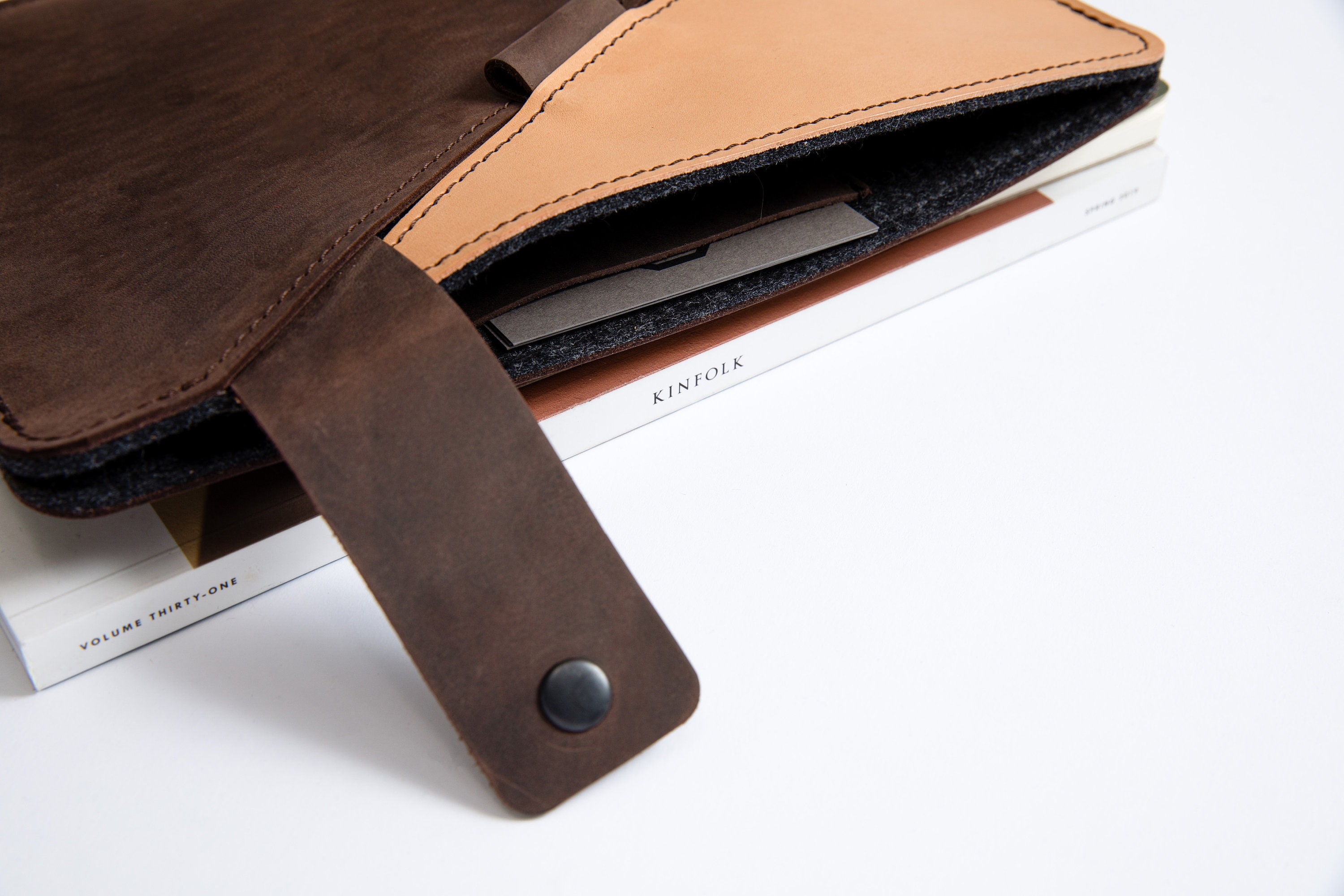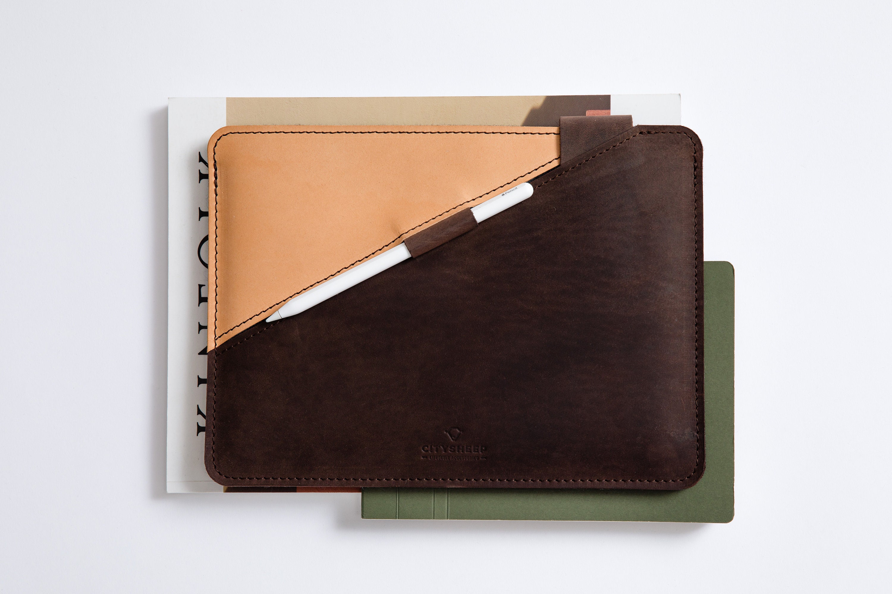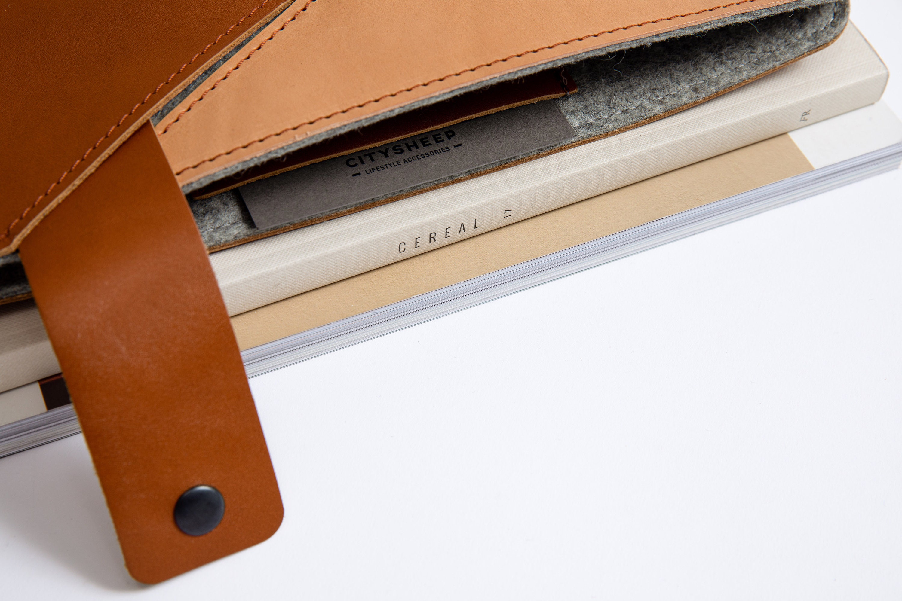 You know that real luxury consists of having only as much as you need as carrying more than that quickly becomes a burden. That which you do own, however, has to be functional and aesthetically pleasing. SLIM FIT is the exact case your iPad requires. Its beauty lies in quality materials: full grain leather combined with vegetable tanned leather and 100% natural merino wool felt from Germany used for the lining. The natural felt is resistant to dirt, water, impact and scratches. SLIM FIT can be stored in a handbag or in hand: due to the perfect seams and precise workmanship this case will be a great match for any outfit. MATERIALS AND DETAILS: - Slim fit design; - Full grain Vegetable tanned leather (Tanned colour)/ Full grain Crazy Horse leather combined with Vegetable tanned leather; - Lined with 100% natural merino wool felt to protect from bumps and scratches; - Pencil holder; - Business card pocket; - Big pocket on a back for your notebook/ documents. In most of cases (depends on model) fits A4 paper; - Small pocket in front of a case for your iPhone/ small notebook/ other stuff. M A T E R I A L S: Making accessories we combine two complementary materials: natural wool felt and genuine leather. We use only carefully selected full grain leather. It is called Crazy horse (distresses leather), because this type of leather is very popular with horse saddles as it is durable and strong. One of its exclusive features is ageing effect. Over time Crazy Horse leather seems to take on a life of its own: the colour gradually changes, becomes richer and the leather itself develops a beautiful and distinct patina. Vegetable tanned leather is one of the most valuable thus more expensive leather. It is dyed using tannins naturally found in plants. Only 10% of all leather produced in the world is processed using this natural and environmentally friendly leather dyeing technique. Vegetable tanning doesn’t conceal the natural leather texture and unique markings. Leather colour, affected by the sun and wear, reveals its beauty and intensifies in time. 100% Premium quality Wool Design Felt. Wool felt is 100% biodegradable and renewable resource. Our felt is made from the most valuable merino wool. Merino sheep are prized for their fine hair and considered to be the highest quality sheep's wool. Natural merino wool felt is water repellent, resistant to stretching and pilling, durable, shock absorbing, non woven material. It is organic and nature friendly material.