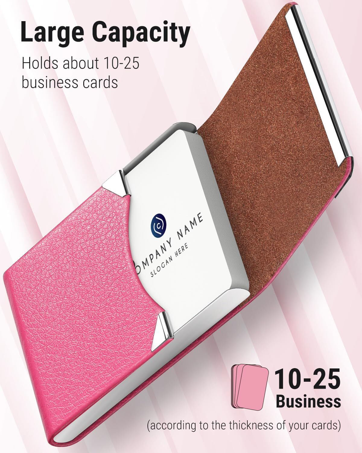 MaxGear Business Card Holder, PU Leather Business Card Case Pocket Card Holders for Men or Women, Metal Slim Name Card Holder RFID Blocking Business Card Carrier with Magnetic Closure, Rose Red Item Description QUICK ACCESS: Built-in magnetic closure, you can easily access any of the cards stored in there. ULTRA SLIM & COMPACT: Hold about 15-25 business cards (according to the thickness of your cards) or 4-8 credit cards. Minimalist enough that you can fits perfectly in your small pocket, briefcase, handbag. PREMIUM MATERIALS: High quality PU leather combined with stainless steel creates a unique style card case. RFID BLOCKING: RFID secure design protect your cards from unwanted wireless communication. BEST GIFT: It can be a great present for yourself or the one you love. Please feel free to contact us if you have any question about our business card case. Payment Fast and Free shipping Shipping safe payment via eBay . Return 30 Day's returns