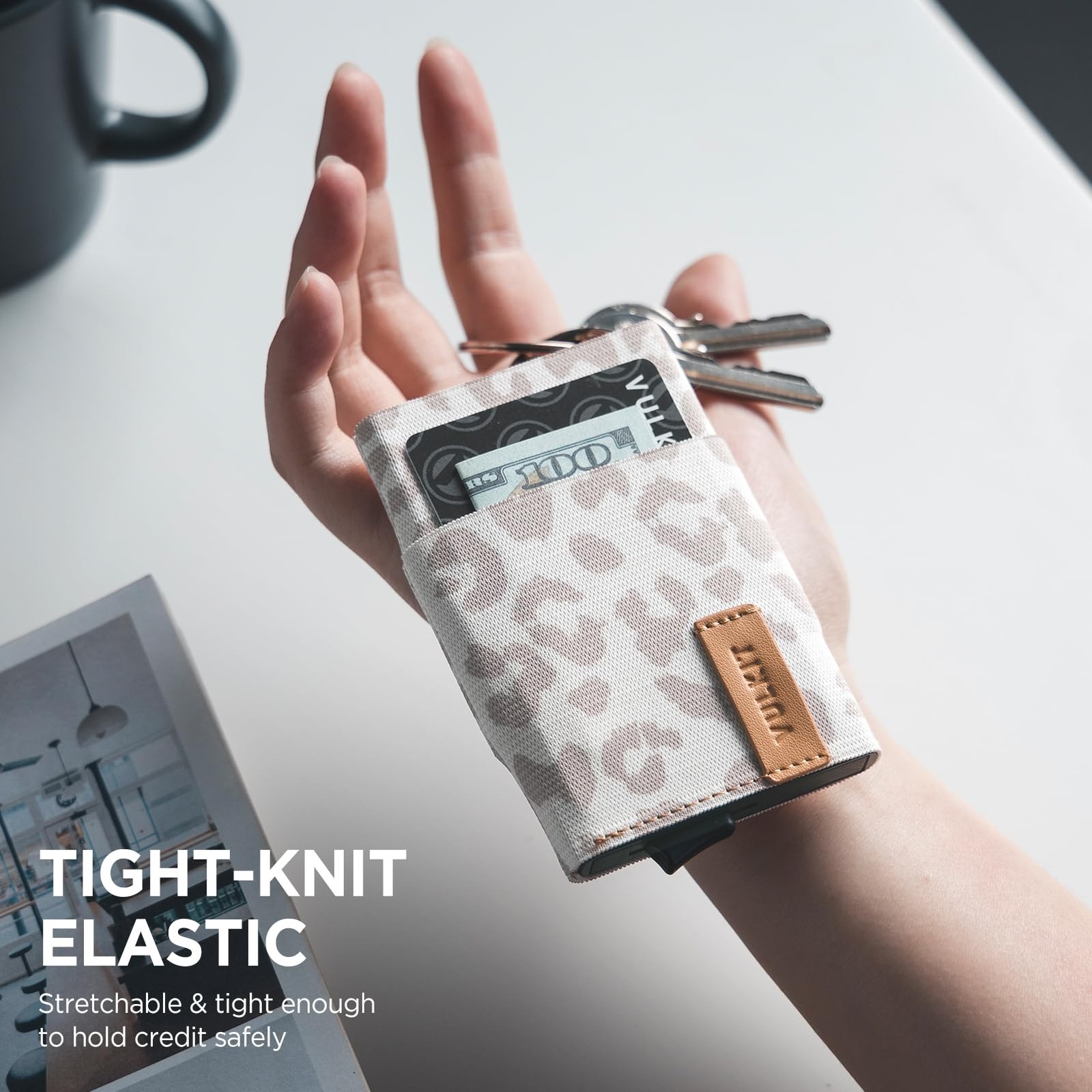 Elastic design with keychain - This wallet has an elastic pocket, which provides extra space for you to use when you need it. It also comes with a metal keychain, allowing you to attach it to a lanyard or bag for easy access on the go. Elastic design with keychain - This wallet has an elastic pocket, which provides extra space for you to use when you need it. It also comes with a metal keychain, allowing you to attach it to a lanyard or bag for easy access on the go. Quick access 5 cards - The metal card case is designed to hold 5 standard-sized cards. The specially designed slider mechanism allows one-hand operation, the most efficient way to pop up cards easily. RFID & NFC Blocking - Advanced aluminum technology protects cards from unwanted wireless scans and effectively protects personal information. Slim & cute - Unique and colorful design, you will always be unique at the forefront of fashion. You can also find lanyards in the same color or pattern with us. This ultra-thin wallet card holder fits comfortably in your pocket, eliminating bulk. Perfect gift idea—This is going to be an excellent gift for Christmas, Birthdays, Valentine's Day, Anniversaries, Father's Day, Mother's Day, and all special occasions. Our wallets come in an elegant gift box that they'll love!
