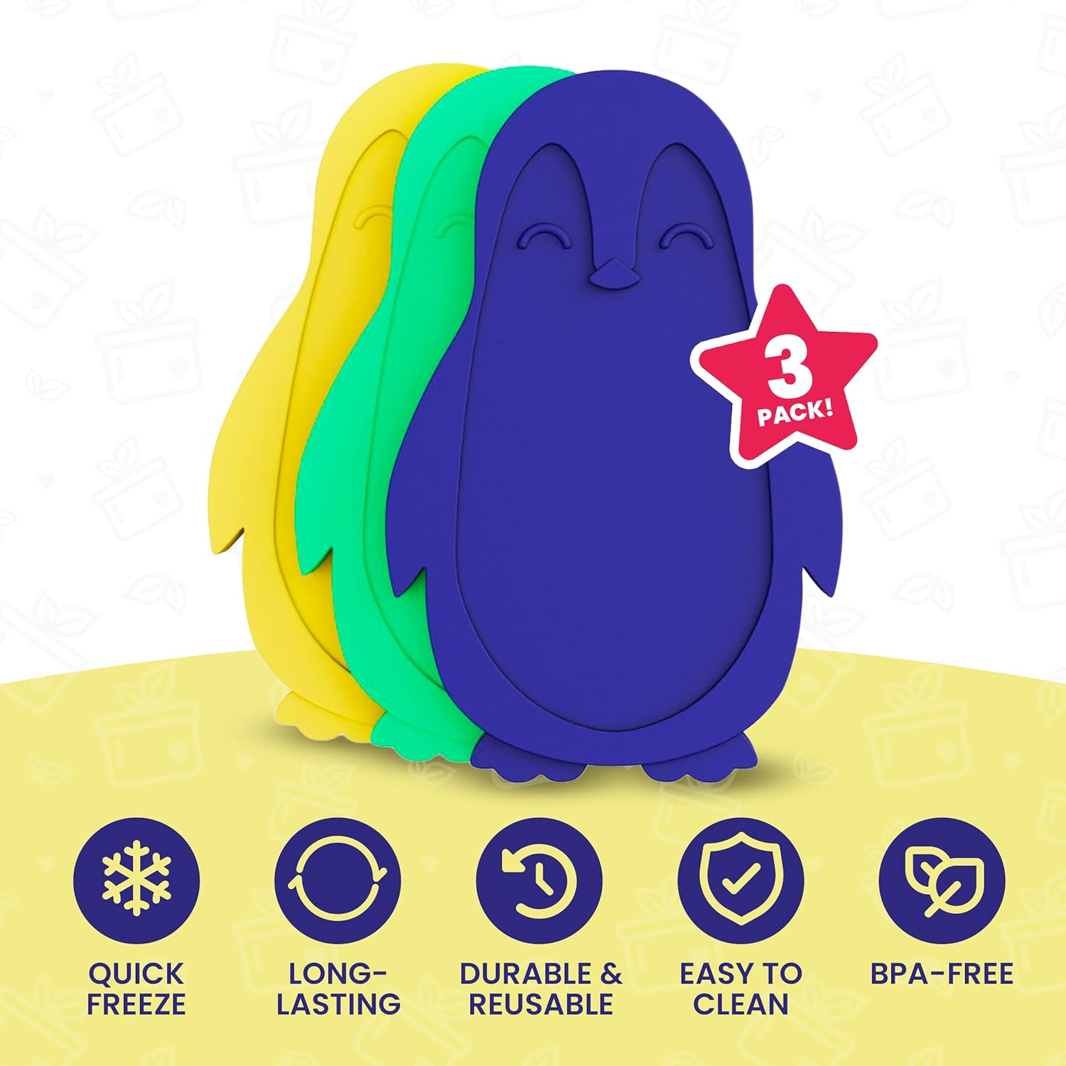 Menu Other Items Feedbacks About Us Contact Us Add To Favorites Slim Ice Packs for Lunch Boxes Kids - 3-Pack Long-Lasting Penguin Lunch Box Ice Packs for Kids - Slim Reusable Ice Packs for Lunch Boxes, Lunch Bags, and Coolers - Multicolored (Penguins) TRUST: Founded in 2015, Healthy Packers is based in Bay Harbor, Florida. We developed these super-cute, reusable lunch ice pack for our families, and know you’ll enjoy it with yours! Questions? Comments? Our US-based team is ready to help! KEEPS FOOD & DRINKS COLD FOR LONGER: Your ice packs for kids lunch box freeze quickly, and help food and beverages stay cold for up to 5 hours — ideal for school, work, picnics, game day, and more. PERFECT SIZE: Measuring just about 0.5” thick, and about 4.3" wide and 6.7" tall, each slim ice pack fits perfectly into any lunch bag or cooler and leaves maximum room for food and drinks. FUN & EASY: Our small ice packs for lunch box, are fun to look at and even play with! They are also super durable and very easy to clean. What's not to love about them?! SAFETY FIRST: Grab a thin lunchbox ice pack for kids and be free of worries! They are BPA-Free, non-toxic and made with food-safe materials only. TSA DISCLAIMER: Healthy Packers Long-lasting Kids Ice Packs for Lunch Bags can be brought through TSA security checkpoints when fully frozen or otherwise stored in checked baggage. Kids Lunchbox Ice Packs Cold Pack for Lunch Box. Item Specification Closure Type Lid Style 3-Pack (Penguin) Capacity 4 Hours Number of Items 3 Unit Count 3.0 Count Color 3-Pack (Penguin) Special Feature Reusable Item Weight 13.1 ounces Shape 3-Pack (Penguin) Age Range (Description) Kid Material Type Free BPA Free Item Form Rectangular Package Dimensions 6.81 x 4.33 x 1.89 inches Shipping FREE FREE SHIPPING We are always working hard to ensure your package arrives as soon as possible. Please understand that some factors like weather, high postal traffic, and the performance of shipping companies are outside of our control. We offer free shipping to the lower 48 states. We do not accept P.O. Boxes. Please provide a physical address. If you have a problem or question regarding your transaction please contact us immediately. We will work with you to resolve any problem you may have. Thank you