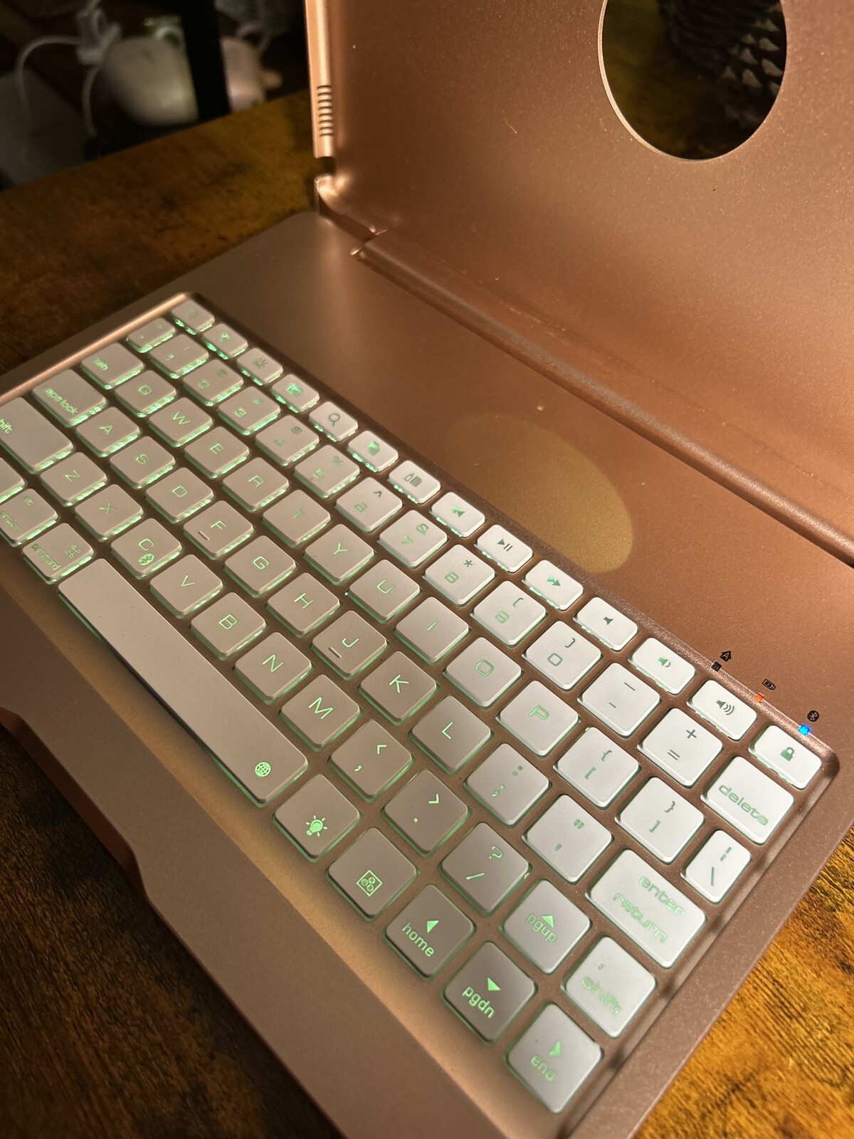 Used IPad Pro 10.5 Inch Laptop Case - Turns your iPad into a mini laptop. Super convenient for students, or people who travel frequently. - Connects by Bluetooth and allows you to type using the keyboard just like you would a laptop. - Is used and does have a few very minor scratches that do not affect the performance. The case is very heavy duty and quality feeling. I have forgotten the brand name and can’t find it. No returns on this item.