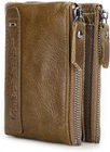 Bifold wallet is made of Genuine Cowhide Leather and Lining is Polyester Approximate size 9.5 x 12 x 3cm/3.8"x4.8"x1.2"inches Pocket Wallet,6 card slot, double zipper pocket,1 mesh id window,1 zipper bill comparment,1 bill compartment Back cover has 1 card slot with snap closure,can for credit cards, debit cards, driver license and ID cards,ID badge, access cards and hotel room cards Minimalist and vintage double zipper coin purse is perfect for everyday use or as a gift for family and friends. This wallets is popular double ziipper pocket,id windows, zipper full bill comparment Suitable occasions: Business Card Cases, Casual, Travel And a wonderful gift for all occasion