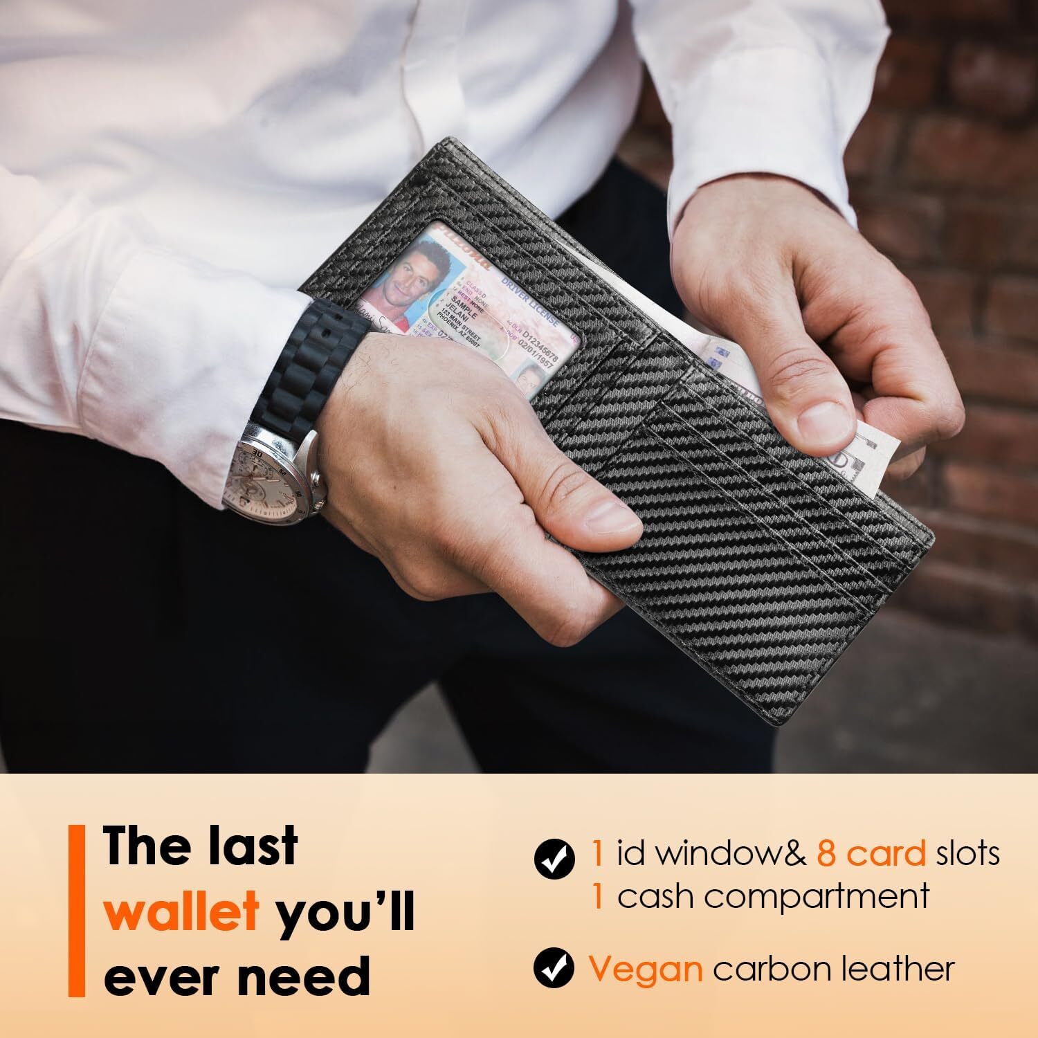 Wallet for Men,Mens Wallet,Slim Leather Bifold,RFID Blocking 8 Slots Gift Box Lifetime Quality Guarantee: Made with premium leather for luxury and durability. Our bifold wallets come with a lifetime guarantee against wear and peeling. For any issues, contact us, and we’ll respond within 24 hours. Spacious Card Slots: Measuring 4.3 x 3 x 0.5 inches, this bifold wallet holds up to 8 cards and 15-20 bills. Its ultra-thin design fits comfortably in your pocket, making it ideal for daily use. RFID BLOCKING FUNCTION- Our RFID wallets for men are equipped with German institute certified RFID SECURE Technology, a unique metal composite, engineered specifically to block 13.56 MHz or higher RFID signals and protect the valuable information stored on RFID chips from unauthorized scans. Ultra-Thin Design: Even when fully loaded with cards and cash, this small wallet is only about 0.8 inches thick. It fits perfectly in your pocket without bulging and features a sleek profile that ensures easy access to your cards and bills while maintaining a refined, minimalist look. Ideal Gift for Men: Our minimalist wallet comes in an elegant gift box, making it perfect for Christmas, New Year, Father’s Day, birthdays, and anniversaries. Great for your Dad, Grandpa, Friend, Brother, Boyfriend, Husband, or colleague.