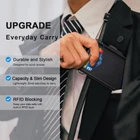 Love this sleek wallet! The pop-up mechanism makes grabbing cards super easy, and it fits way more than I expected—plenty of room for cards and cash without bulk. The RFID protection is a great bonus, and the leather/metal combo feels premium. Perfect for everyday use, and the slim design stays comfy in my pocket. Highly recommend!