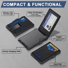 UPGRADED DESIGN FOR QUICK ACCESS: card wallet combines high-quality leather and premium metal, featuring a smooth pop-up mechanism. Its ergonomic design allows for effortless card retrieval with a gentle slide of the side button. LARGE CAPACITY: 12 cards can be inserted in this card holder, with the aluminium chamber holds 6-8 cards, and the leather shell holds 4 cards (including an ID window). The removable money clip holds 15+ cash, effectively fulfilling daily storage needs. COMPACT AND LIGHTWEIGHT: Our minimalist wallet weighing only 120g , with a slim design that fits effortlessly into any pocket for easy portability. The side hanging hole offers the option of attaching a lanyard, providing extra security for the wallet. RFID BLOCKING SECURITY: This RFID wallet incorporates advanced RFID blocking technology, protecting credit cards, debit cards, driver's licenses, and other personal information from unknown scanning devices, maximizing the protection of your privacy. PERFECT CHOICE: The men's wallet is presented in simple and elegant box packaging, making it a perfect surprise for your brother, friends, boyfriend, or husband on birthdays, Valentine's Day, Father's Day, Christmas, and New Year. QUALITY WARRANTY: We are committed to providing 24 months of wallet repair and efficient customer support service. If you encounter any issues, we are here to assist you with hassle-free replacements for your men's wallet.